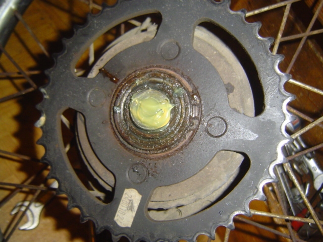 Als Hinterrad kann das einer Honda CB 50 J hergenommen werden: Vorteil: Eine größere Auswahl an Kettenrädern, die dazu auch noch billiger sind.