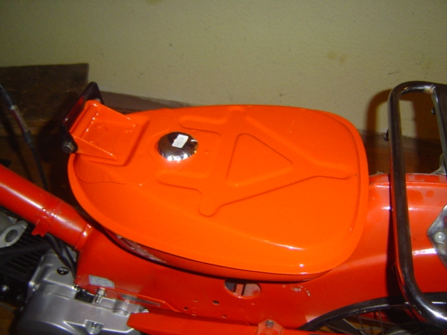 Von der gelben CT 90 stammte auch der Gepäckträger vornen, den gibts ja auch noch als Neuteile von Honda, der hintere 2,5 Liter Reserve Tank gibt es nicht mehr, aber in Teilen ist er noch im US Zubehör zuhaben. Alternativ müsste mit einer passenden Halterung der auch von der Cross Cub 110 passen, vielleicht bekommt jemand mal die Bestellnummern dafür heraus.