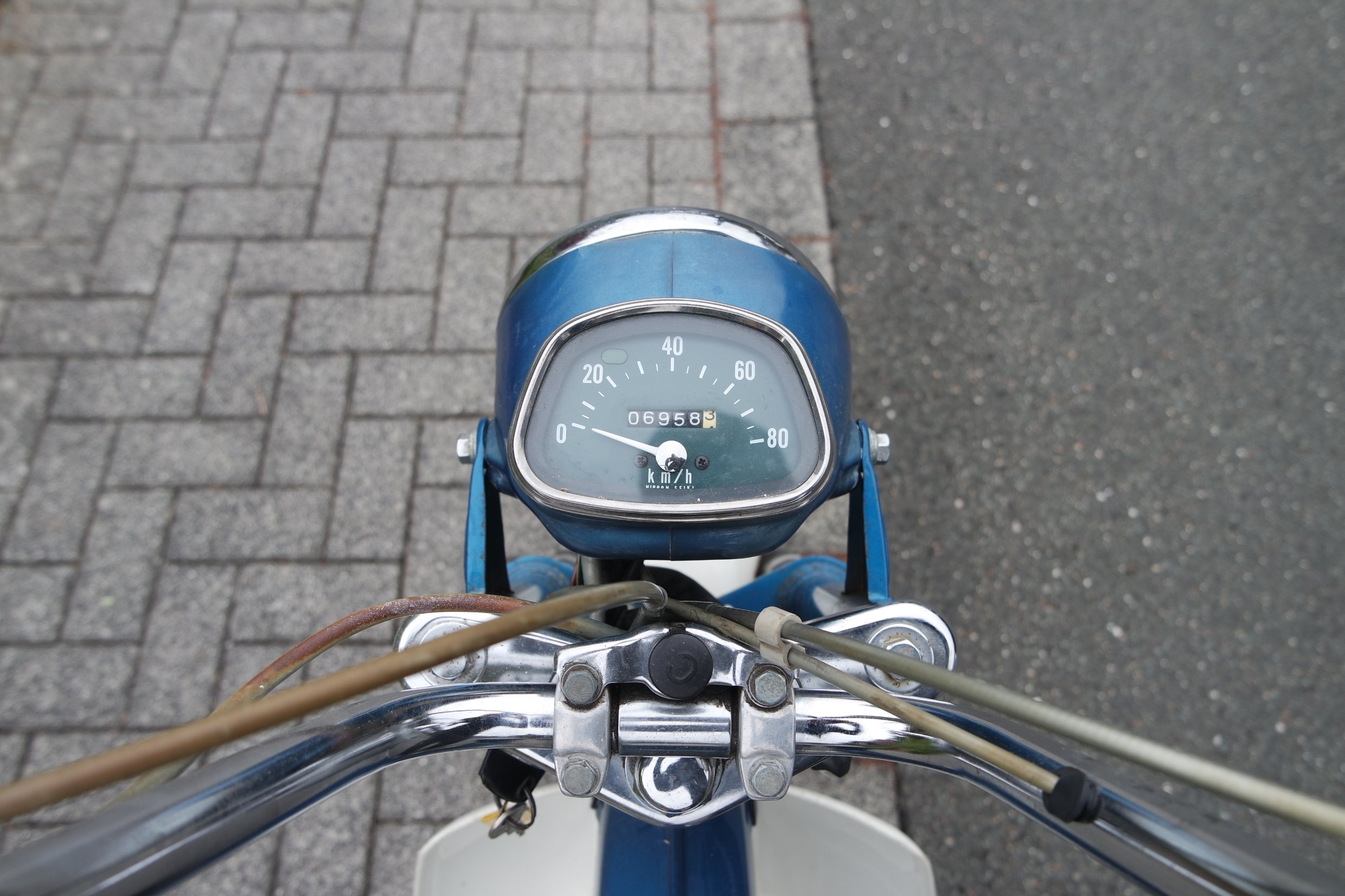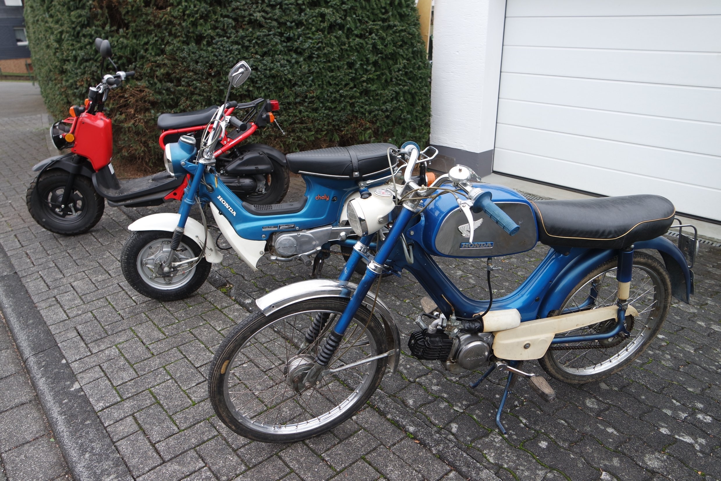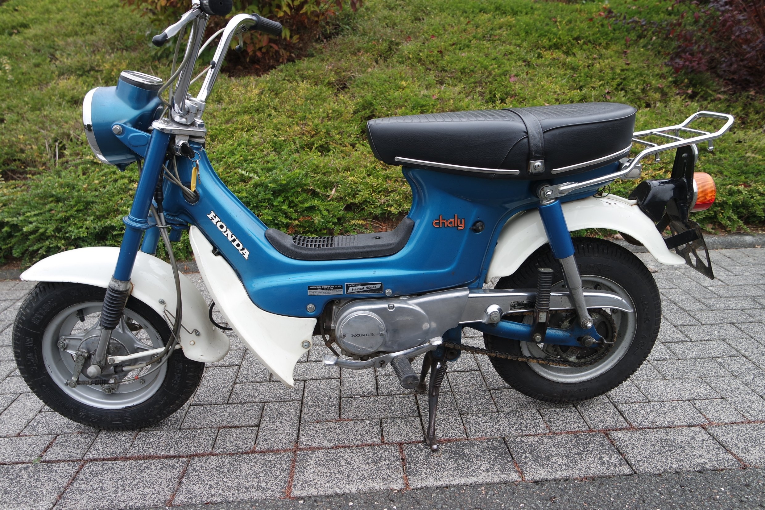 Ich fange mal mit der (dem?) Zoomer an. Gekauft von einem Honda-Sammler (er hatte zu Spitzenzeiten über 100 alte Modelle), der sie vor 9 Jahren aus 1.Hand von einem Rentner gekauft hat. Dann damals damit ein paar Runden im Dorf gedreht und dann ohne weitere Arbeiten in die Sammlung gestellt. Letztes Nummernschild war von 2009, mit dem Wissen habe sie sie dann gekauft. Mit dabei gab es einen Schlüssel und eine "Betriebserlaubnis" §21 für die Umrüstung 2005 als Mofa. Der Rentner hatte wohl keinen Führerschein und durfte nur Mofa fahren. Drosselsatz von AlphaTechnik (Zündspule und Varioring) war mit dabei, wurde aber wohl nie verbaut und dienten nur zur Eintragung in die Papiere.