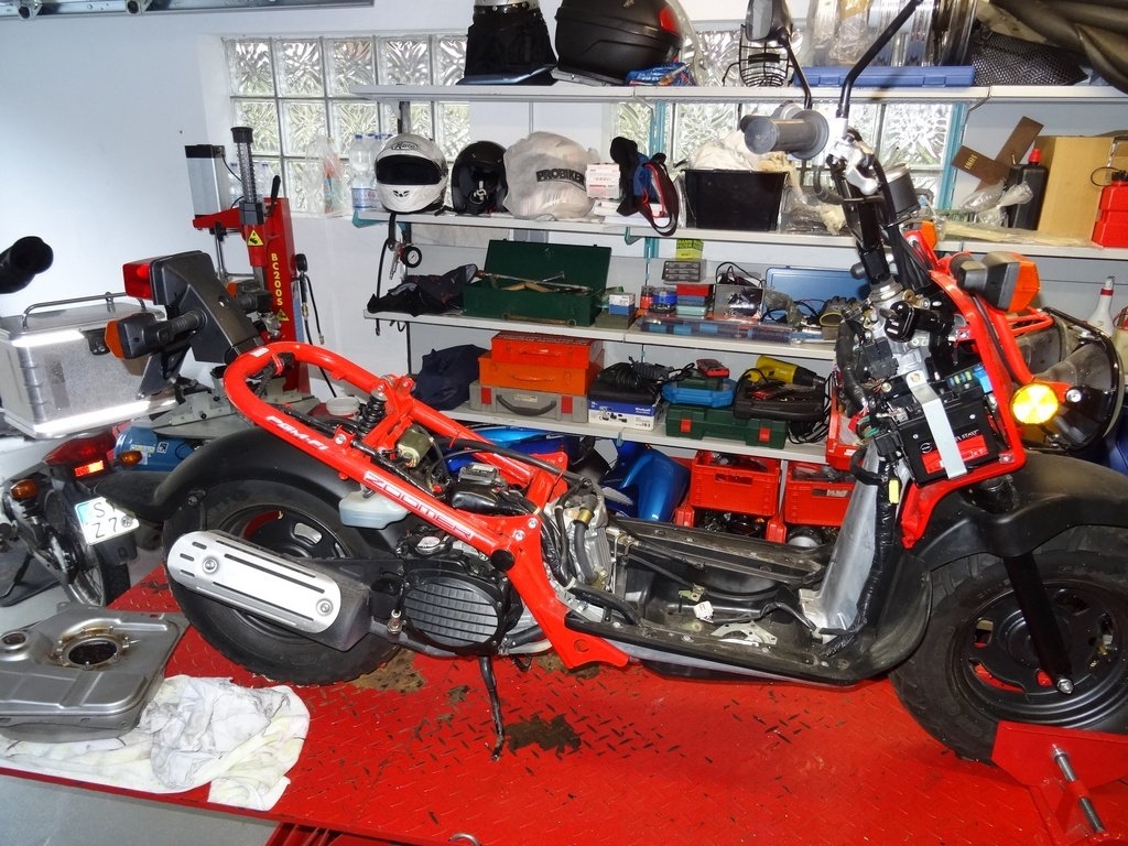 Daher erst einmal Zoomer auf die Bühne, leicht gestrippt und Tank ausgebaut. Der Rest präsentierte sich in nahezu Neuzustand. Nur leicht angestaubt aber ohne den gerinsten Gammel. Scheinbar hat dieses Modell noch keinen Regen gesehen. Alles perfekt und unverbastet: