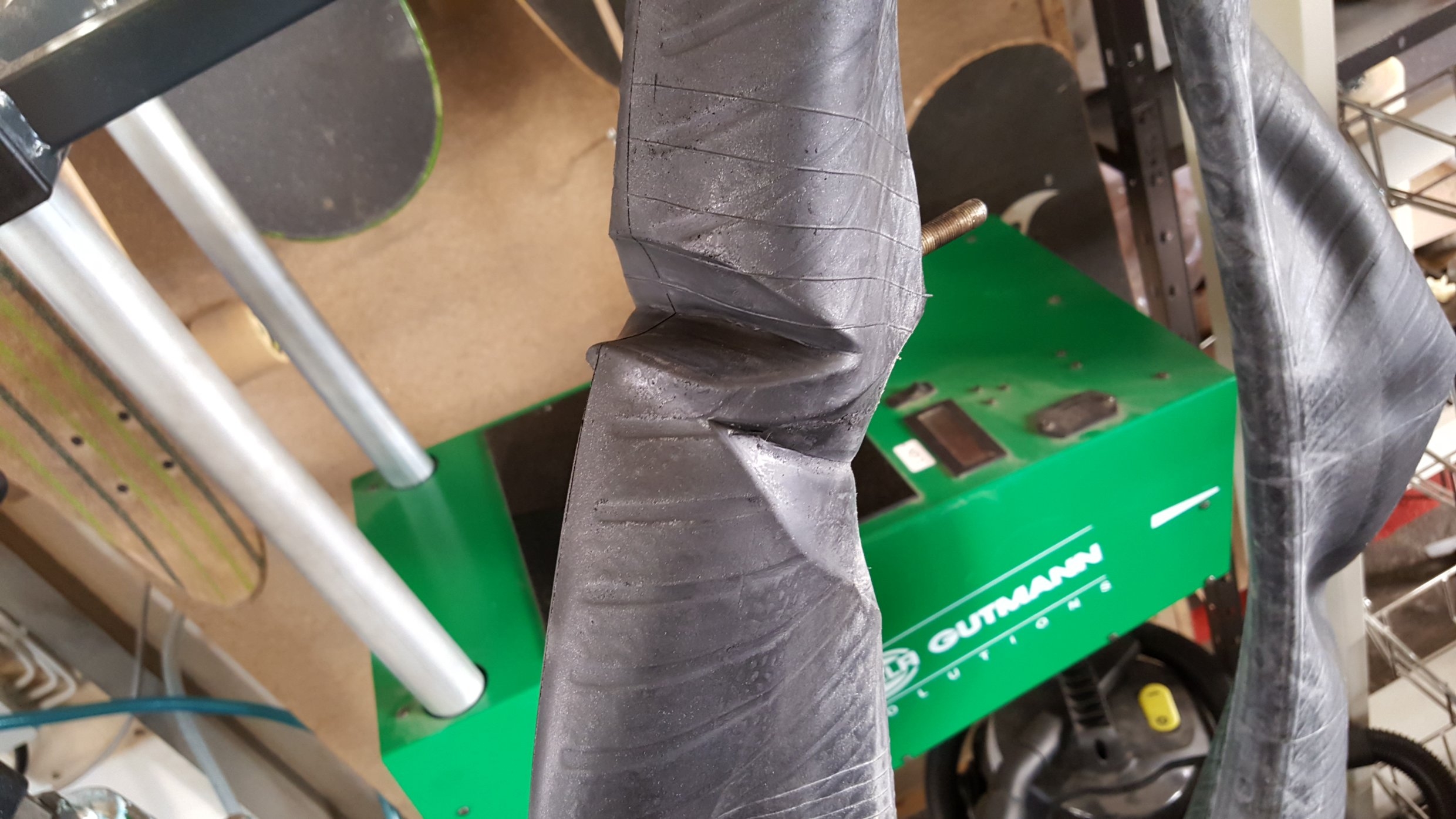 Der gute Mann kann nur froh sein, das dieser Schlauch nicht bei voller Fahrt geplatzt ist.