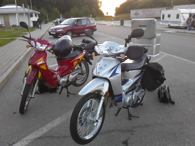 Die rote 125er KMS Hisun rannte gar 120 und Alex wiegt locker 85kg,