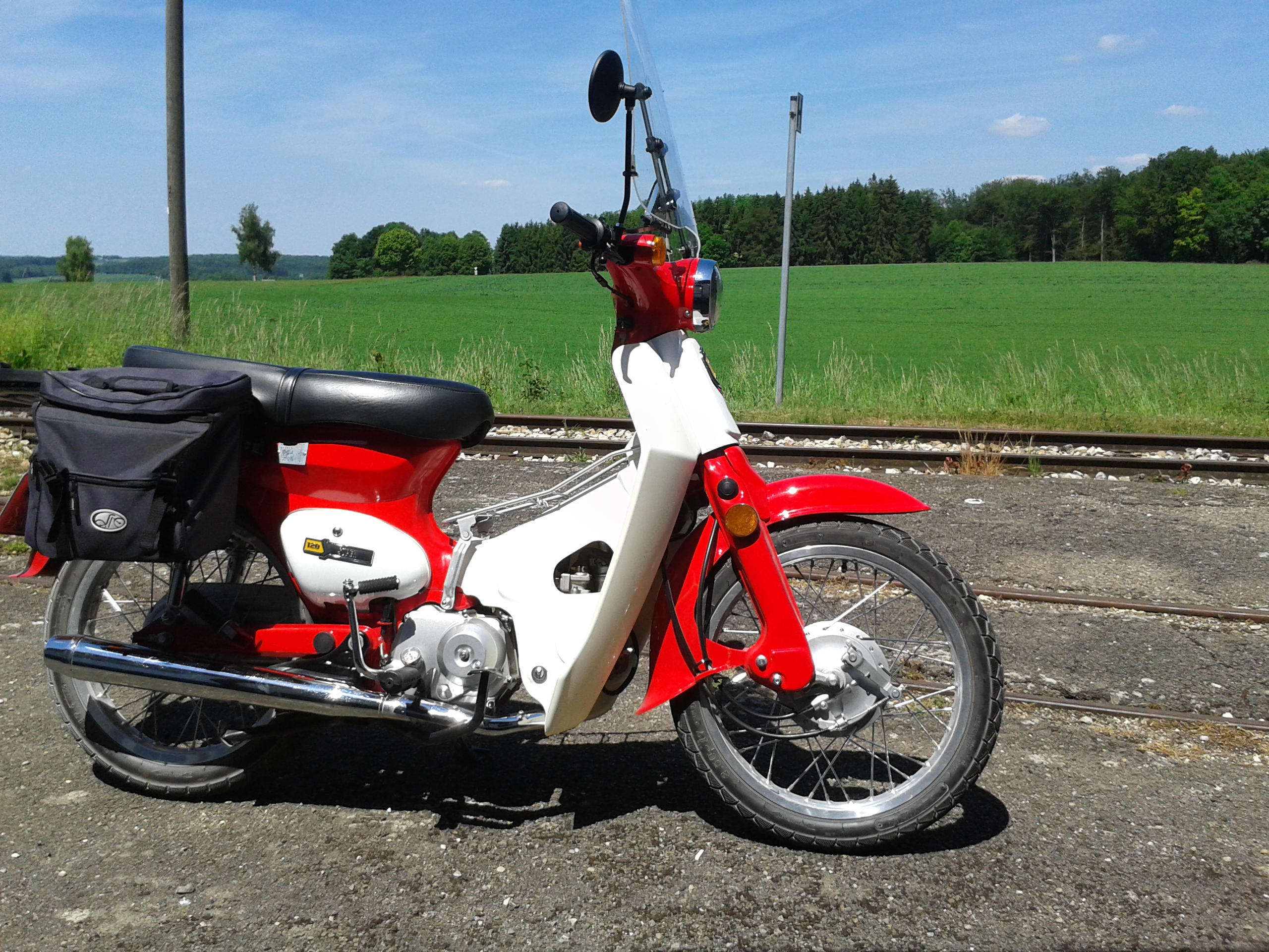 Obwohl mein Honda SH125 Roller und Yamaha YBR125 meiner Tochter die in allen Belangen besseren Fahrzeuge sind, zieht es mich auf die Super120, wenn ich mir die Zeit für eine Ausfahrt nehme. Ich habe es schon mal geschrieben: sowas sollte es auf Krankenschein geben. Entspannung durch Entschleunigung und das sofort und pur.