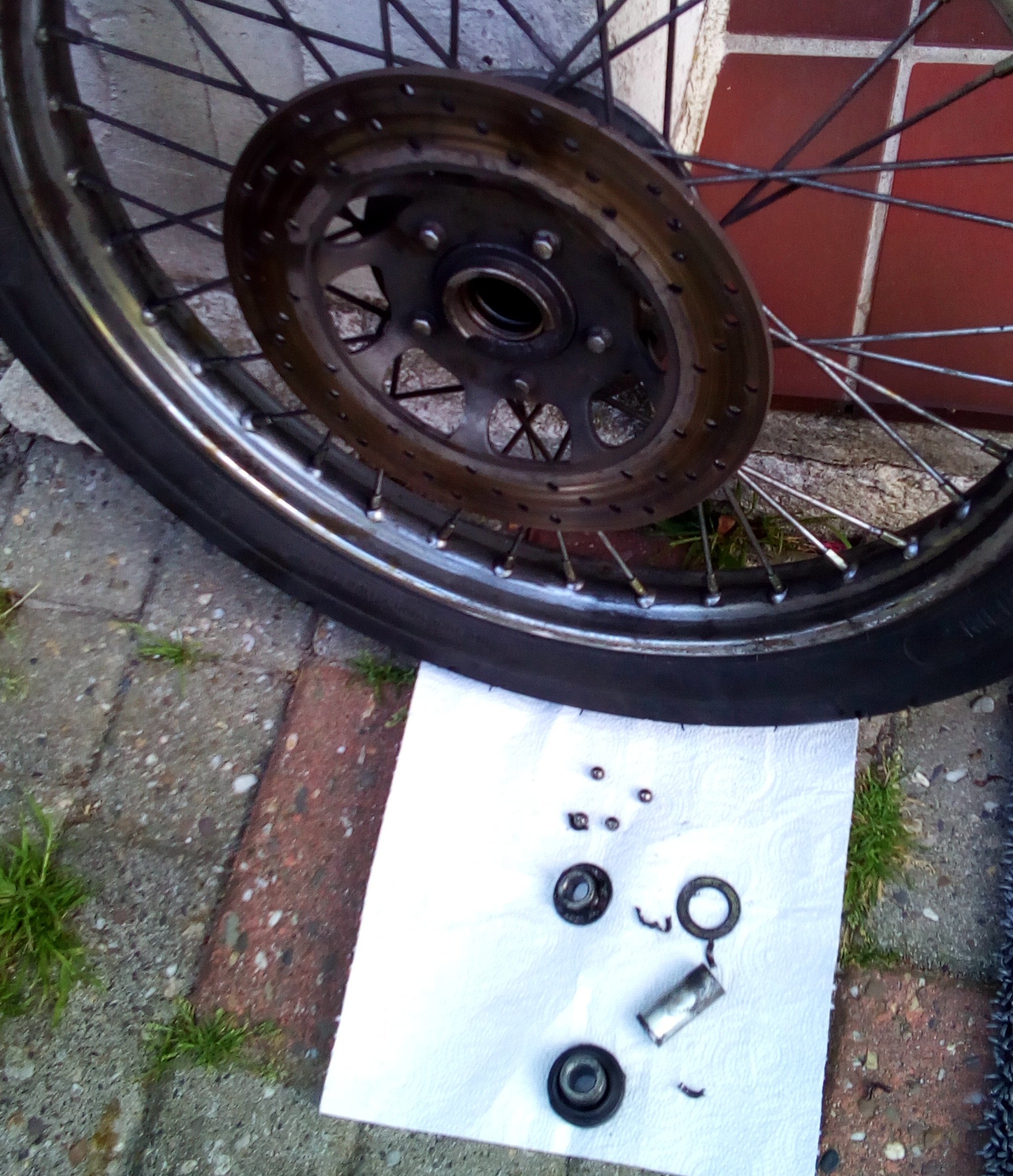 Dann bin ich rausgegangen, habe die Bremsscheibe noch mal richtig schön gereinigt und dem Moped ein paar neue Bremsbeläge verpasst.