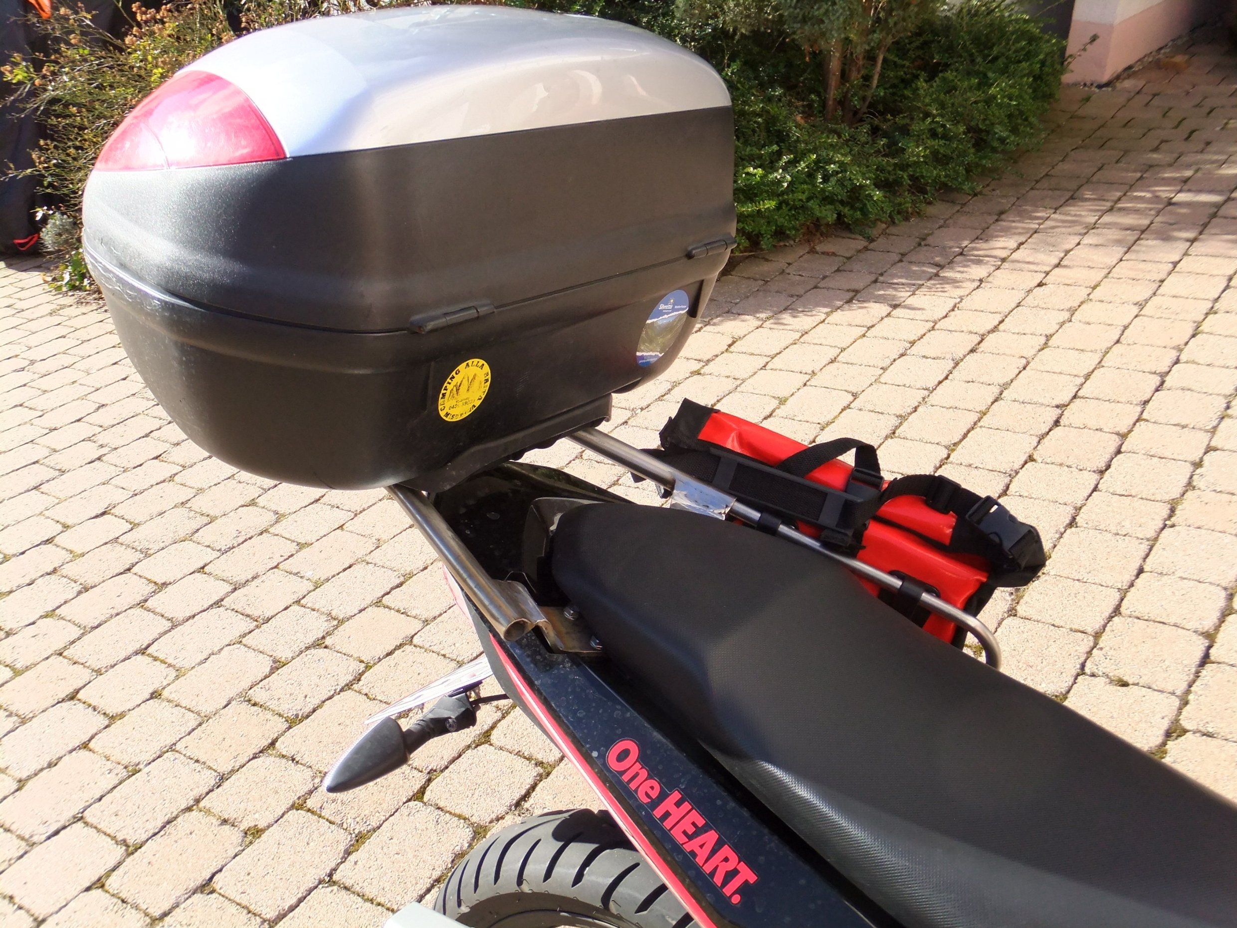 Sitzbank und Fahrwerk sind bockhart, aber das sind die SH300 Fahrer bereits gewöhnt, wenigstens klappts mit den Spiegel durch die ovale Form.