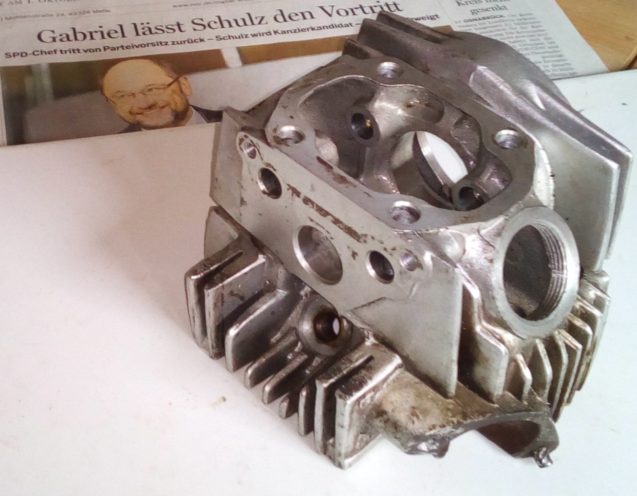 Absolut komplett mit Nockenwelle, Ventilen usw. Reiner Warenwert: 30,-€ Versand 35,-€ Zollgebühren 12,35 € Larry: 45 Minuten (Fahrzeit/Kosten + Zollabfertigung) 77,35-€ + Larry..... Eine Reparatur war (zumindest für mich, trotz meiner Möglichkeiten) dazu vergleichsweise unrentabel. Zu der Qualität kann ich natürlich nix sagen, rein optisch macht das Ding allerdings einen guten Eindruck....