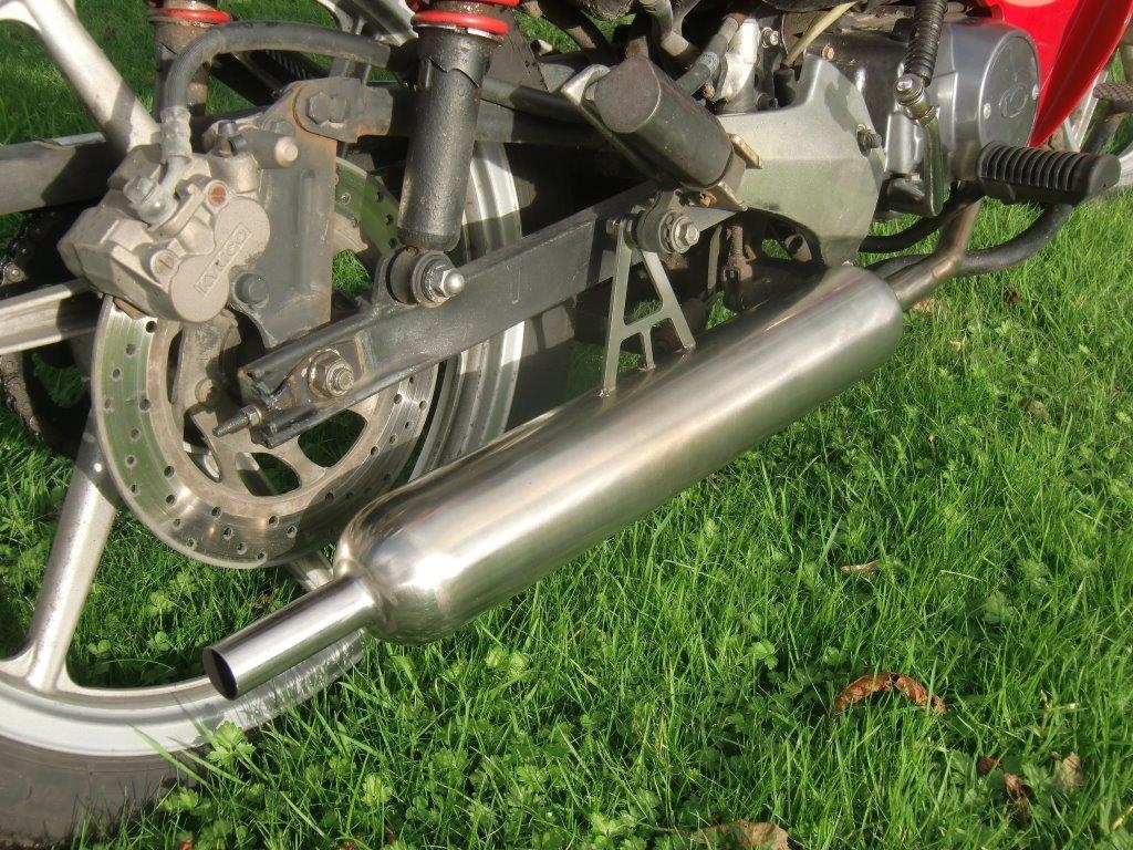 Da der originale Auspuff zu rostig und schäbig aussah, hat sie eine komplette Edelstahlauspuffanlage á la Enfield bekommen.