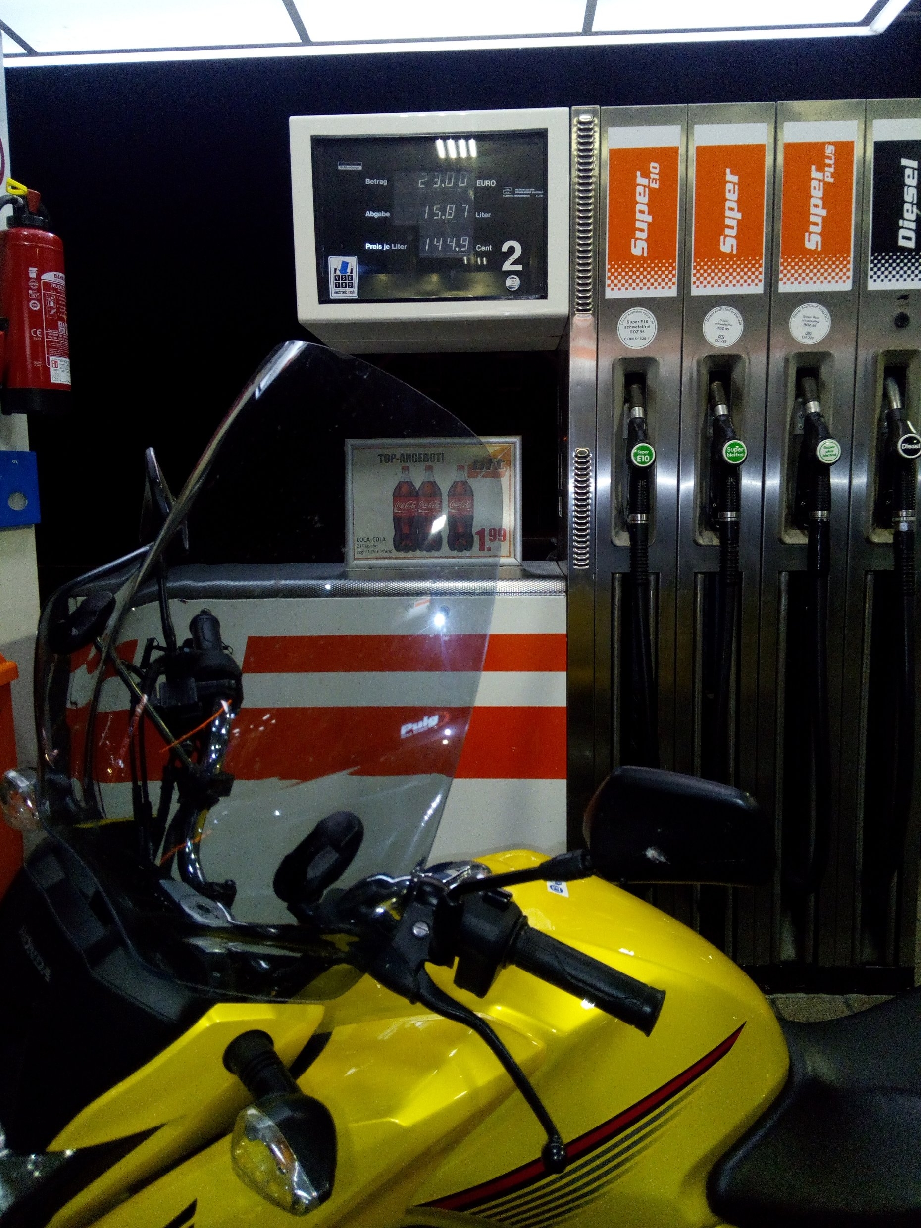 Heute wieder den gelben Engel ausgeführt. Ziemlich leer gefahren. Ziemlich viel Zeit gelassen beim Tanken.