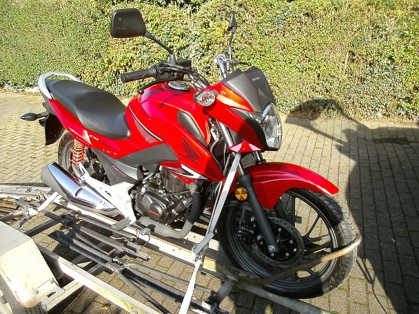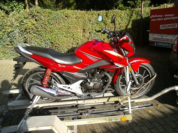 Jau heute Morgen ging es nach Dortmund zu Honda Heinen und habe dort einen Kaufertrag für eine Honda CB125F mit Tages Zulassung gemacht. Das Fahrzeug hat 0 km und ist in Rot meine Graue Wave musste dafür weichen. Am Dienstag ist sie Abholbereit werde sie dann auf dem Anhänger abholen und Mittwoch Anmelden :up2: Ja ich weiß jetz kommt wieder du hast doch schon genug aber wir Männer sind wie Kinder und wollen ab und zu ein neues Spielzeug und außerdem is bald wieder Weihnachten können den mehrere Moppets Sünde sein. :roll: Nächste Woche werde ich dann mal Fotos machen und berichten. Gruß Harry :superfreu: