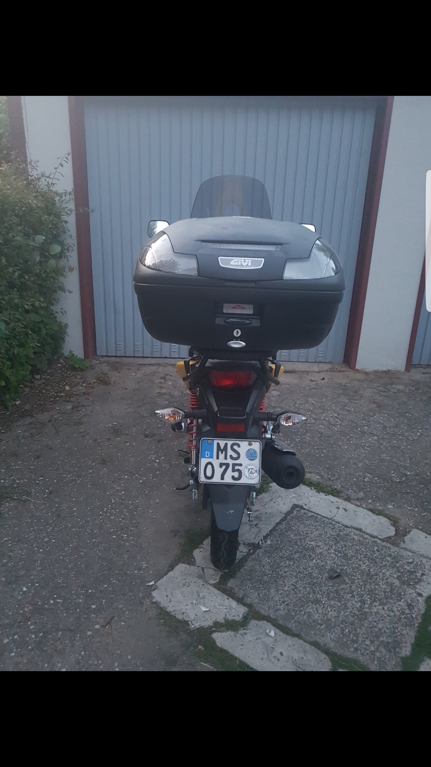 Ich habe heute in anderthalb schönen Stunden das Kennzeichen, die Puig Scheibe, den Gepäckträger und das Topcase montiert.