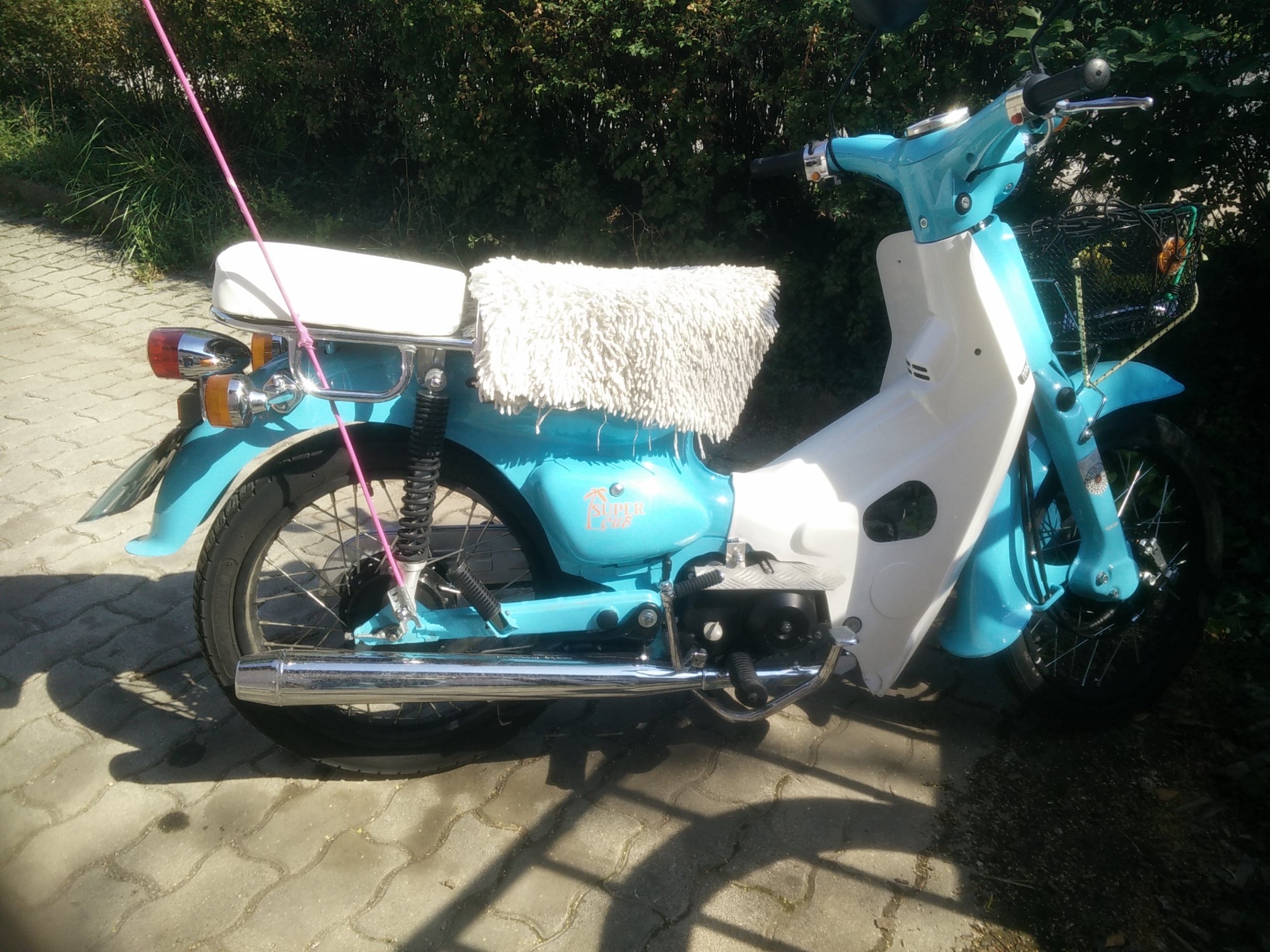 Marke Super, Type Super CUB 110, EZ.2016, an meinem 63. Geburtstag, 5,55 PS, nicht verkäuflich, nur vererbbar. Eine Mezzie für € 2.200?