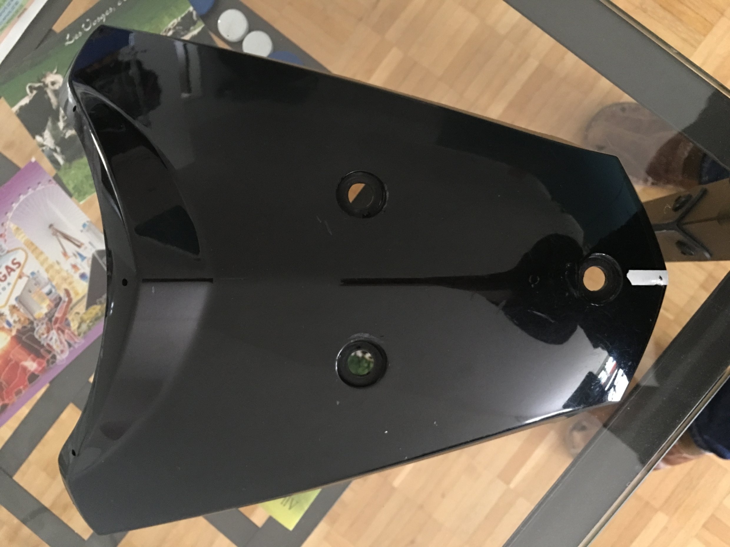 Jetzt ist die neue Verkleidung dran, die Frontabdeckung steht zur Verfügung. Damit Du keine falsche Vorstellung zum Zustand hast hier ein Bild von dem gereinigten Teil. Hatte in der Vergangenheit mehrfach Kontakt mit der Umwelt.