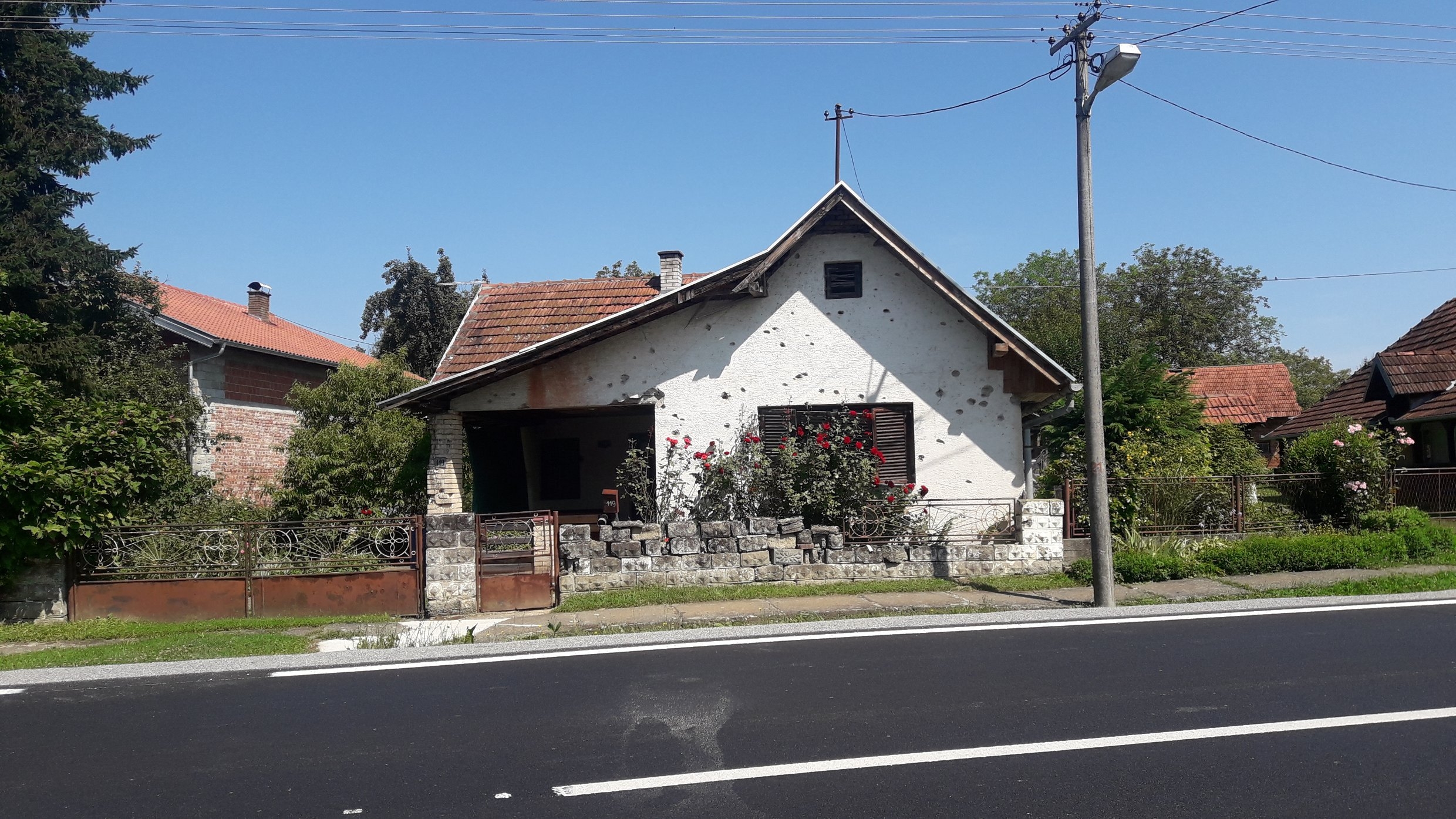 Um 17.00 Uhr spuckte Bosnien mich aus. Wieder fuhr ich über einen prallen Grenzfluss. Die Strassen waren feucht und nach ca. 25km fand ich Obdach in der Einöde, b&b €25. Die Insekten summen, die Vögel singen, mehr ist nicht. (Aber ein Mann, Kroate, wollte, dass ich ihm €100 auf 2 Fuffziger wechsle. Ich Feigling habe abgelehnt. Es könnte Falschgeld sein.) www.bijela-stijena.com Kroatien. 397 km (2 Tage) bis heim.