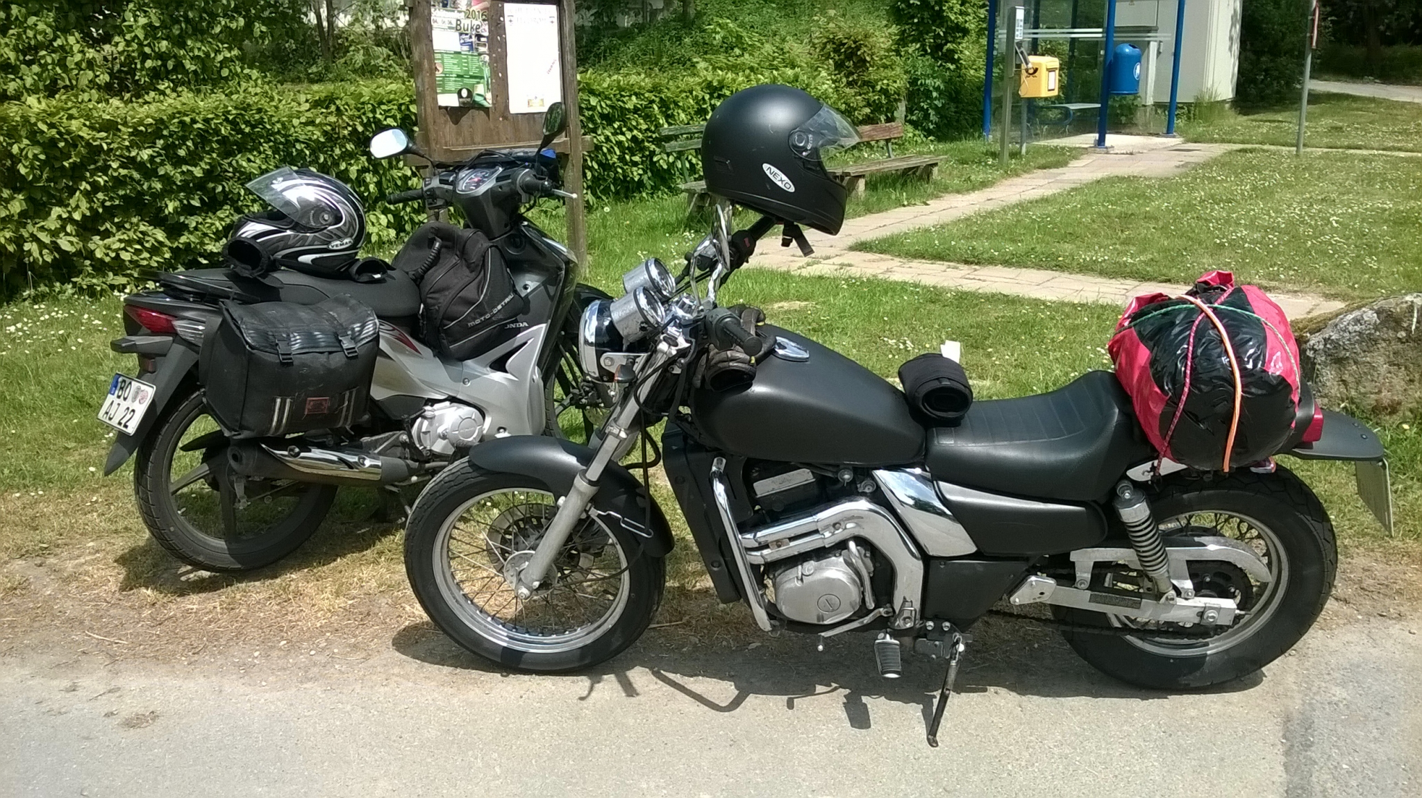 Rückreise dann am Samstag wegen Unwetterwarnung und ohne spektarkulären Ereignissen...Fazit....ne 250er Kawa ist nicht unbedingt schneller als ne 8,5 PS CUB...hat aber Spass gemacht und im Sommer geht es dann 2 Wochen auf Tour !