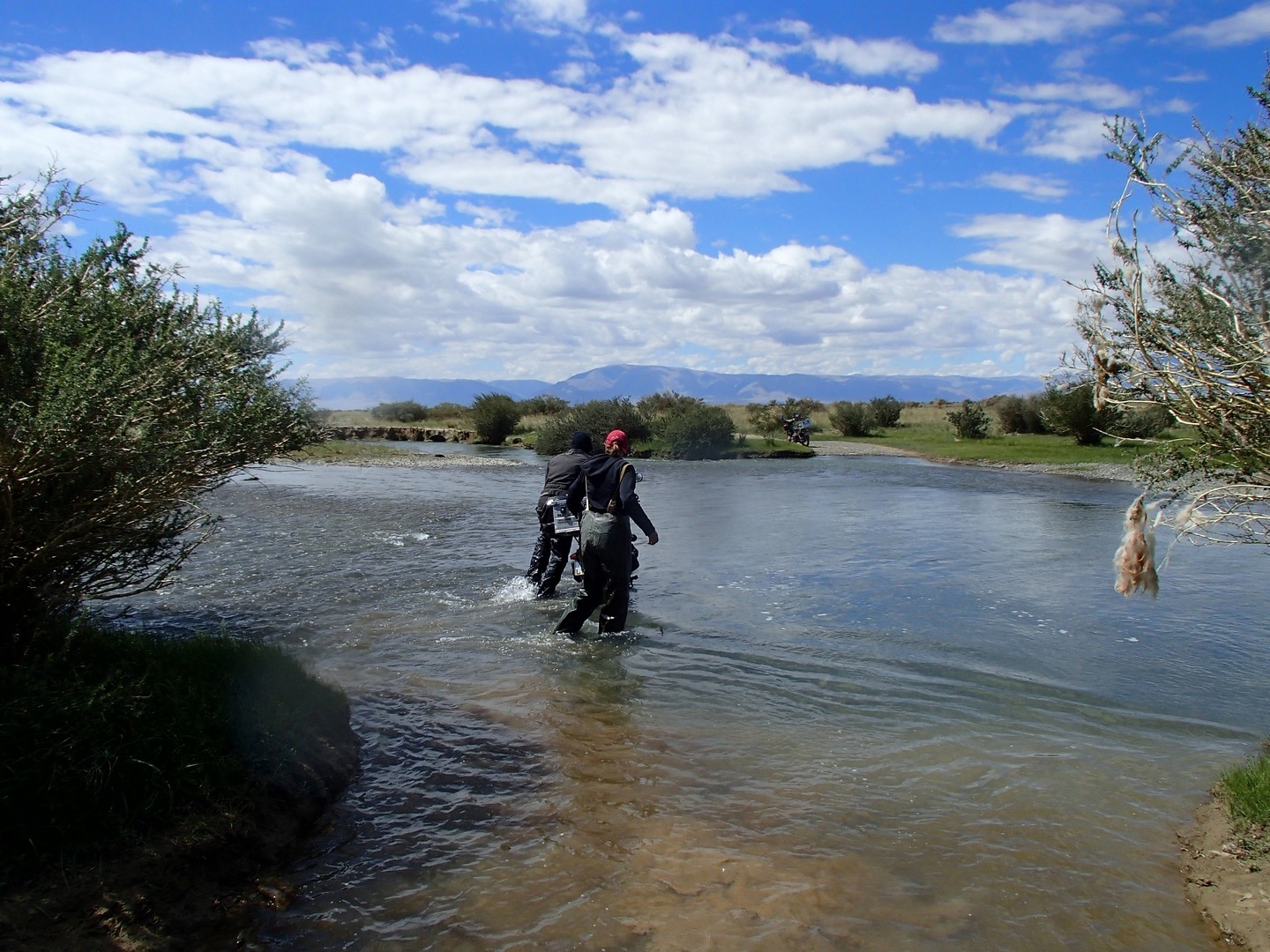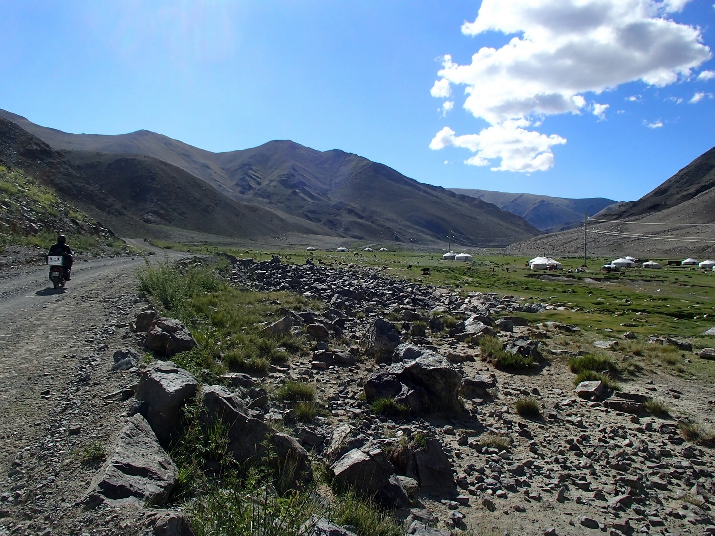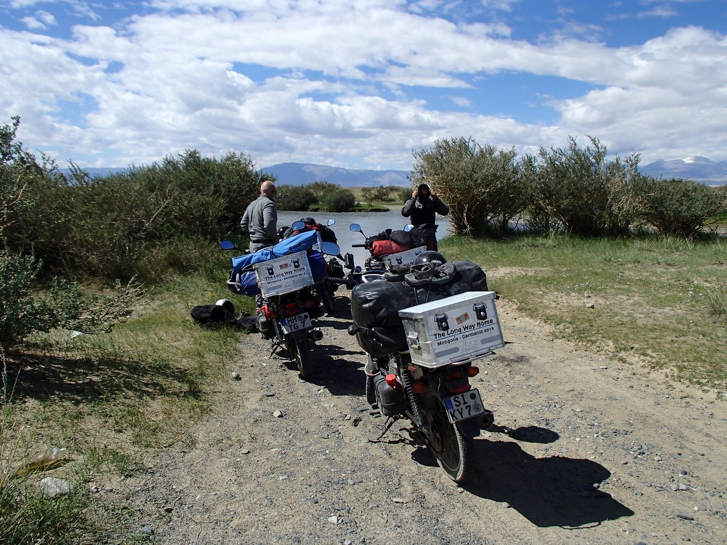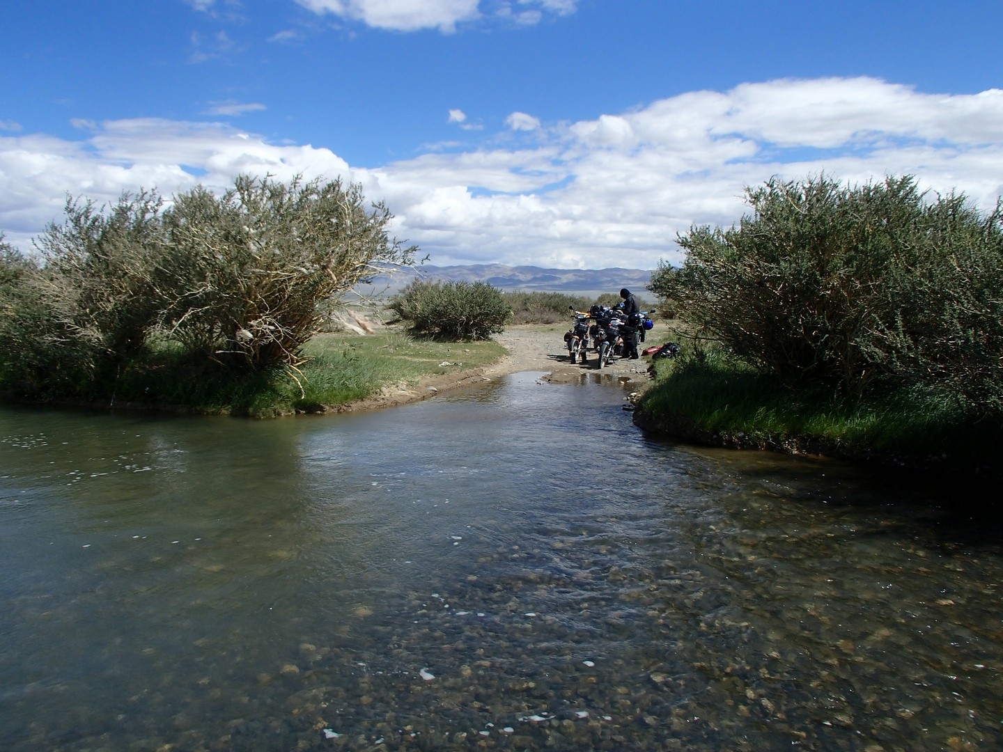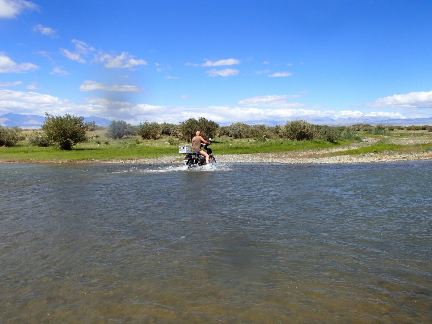 Die Nacht war ruhig...lt. GPS-Daten und den spärlichen Infos aus der Karte dürften wir noch ca. 150 km von dem mongolisch-russischen Grenzübergang entfernt sein. Nur, 150 km können in der Mongolei eine Tagesreise sein wenn alles klappt oder auch ne halbe Woche in Anspruch nehmen. Mir kamen die Worte des Portugiesen wieder in den Sinn den wir vor ein paar Tagen mit seinem Motorrad in den Bergen getroffen haben: wenn wir zur Grenze wollen müssen wir ein paar Flüsse durchqueren, die es in sich haben :shock: Da wir bisher davon noch nichts gesehen haben könnte es aber heute...wir werden sehen.