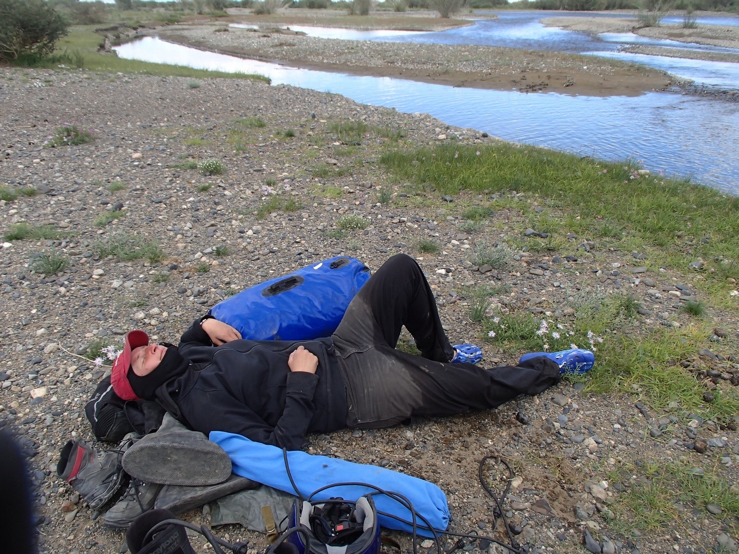 Jeder schlug mit seinen Armen um sich um die Biester loszuwerden, wir kamen nicht richtig weg weil wir noch im Sumpf waren. Ich konnte kaum was sehen, weil meine Brille außen schwarz voll Mücken war. Es war die Hölle! Durch den weichen Boden kamen wir auch nicht auf Tempo um die Mücken loszuwerden, dazu standen wir dann vor dem nächsten Fluss und das ganze Spiel begann von vorne...definitiv die anstrengendsten Stunden der bisherigen Reise!