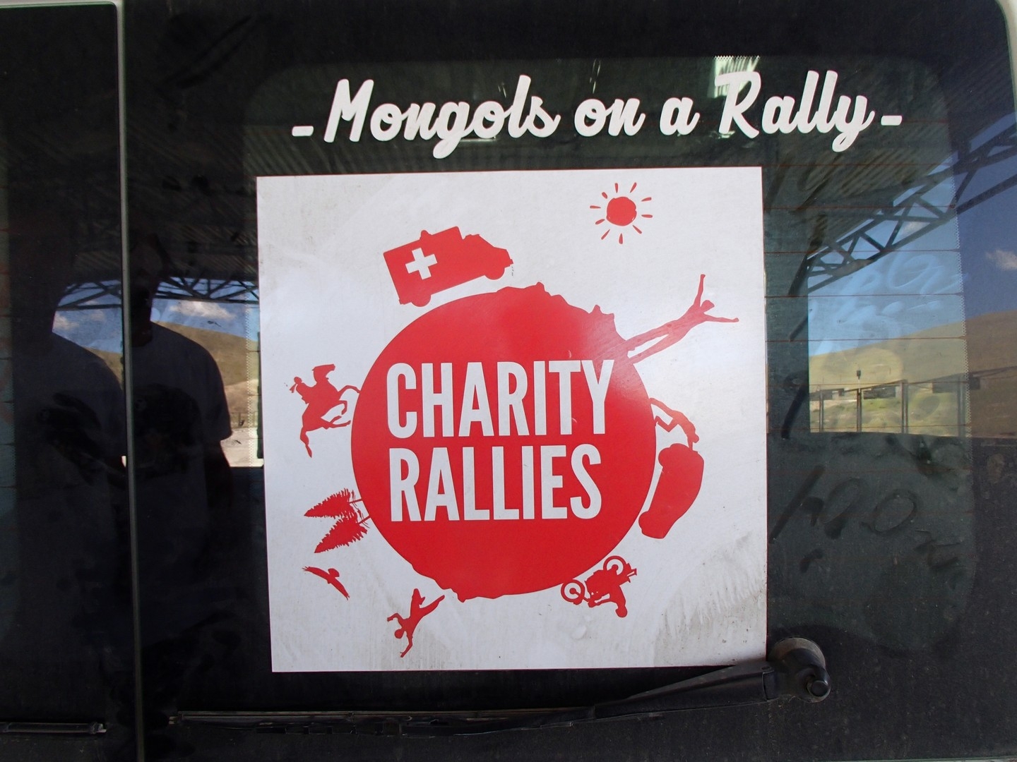 Während ich in den Büros versuchte den Papierkram zu erledigen lernten draußen Janni, Martin und Reinhard 2 Teilnehmer der Mongol-Rallye kennen. Die Belgier waren mit einem alten Ford Transit unterwegs nach UB und warteten bereits einen ganzen Tag länger auf die Abfertigung. Sie hatten den Wagen voll mit gesammelten Hilfsgütern und Medikamenten als Spende, waren offiziell dort am Zoll angekündigt und die ließen die dort trotzdem einfach so mal 2 Tage (oder noch länger?) "schmoren". Es war echt unfassbar!