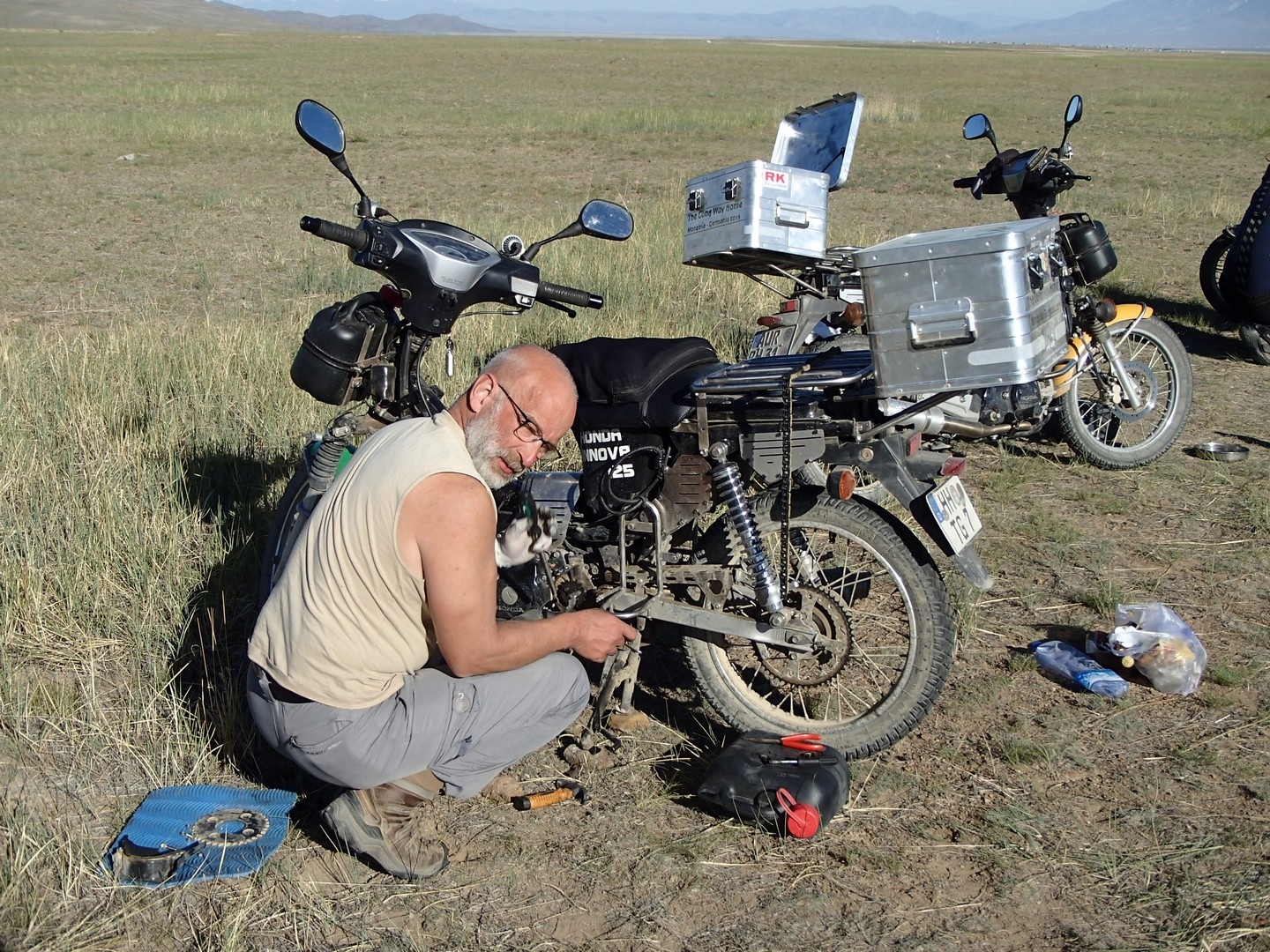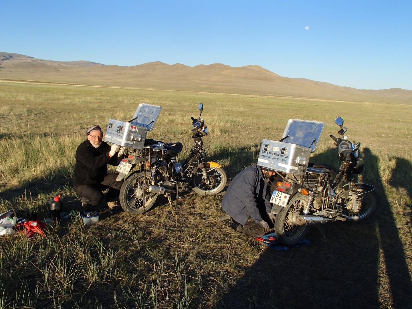 Direkt vor dem Hotel erklärten wir den Seitenstreifen ab jetzt zur Inno-Werkstatt, Zeit für Inspektionen an allen 3 Mongos: