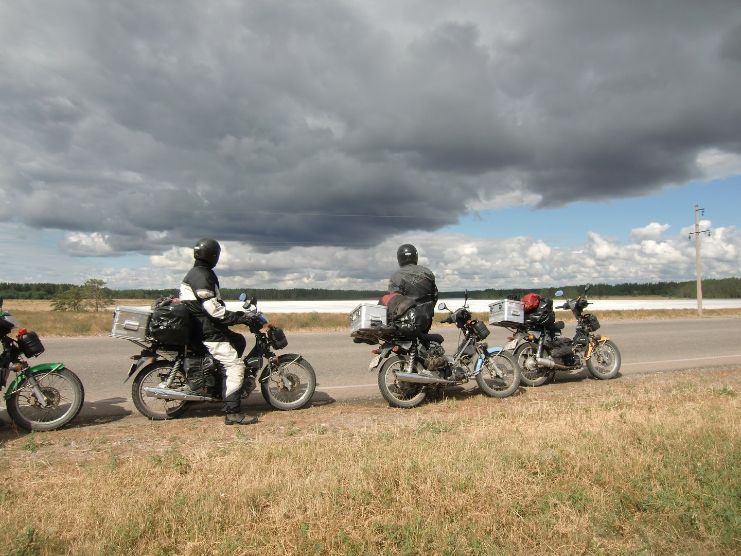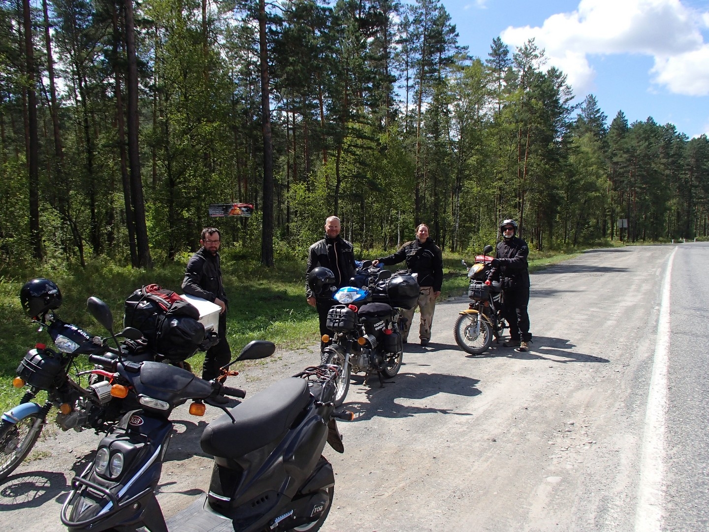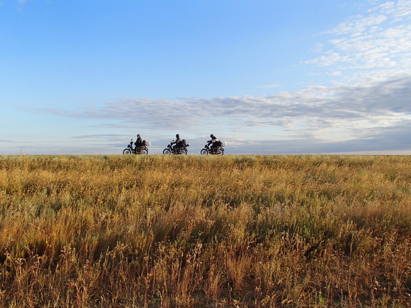 Die erste Nacht auf Russlands Boden war sehr erholsam. Der Nervenkrieg gestern beim Grenzübergang hat Kraft gekostet. Wir hatten gestern Abend noch etwas auf unsere "Ankunft" in Russland angestoßen, die Erleichterung war allen anzumerken. Wir lagen zwar noch zeitlich einigermaßen im Plan, trotzdem wurde es jetzt auch mal endlich Zeit 'Kilometer zu machen'. Direkt hinter der Grenze fuhren wir auf Asphalt, und wir alle waren heiß drauf es mal wieder richtig laufen zu lassen. Über 2 Wochen waren wir jetzt mit der ultra-kurzen Übersetzung (55er Ritzel) unterwegs, sind trotzdem tagelang auf Schotter und im Tiefsand oft nicht aus dem 2. oder 3. Gang herausgekommen und abends stand nicht einmal ein 20er Schnitt auf dem Garmin. Das muss sich jetzt ändern, es war Zeit zum Umbauen angesagt... :mrgreen: