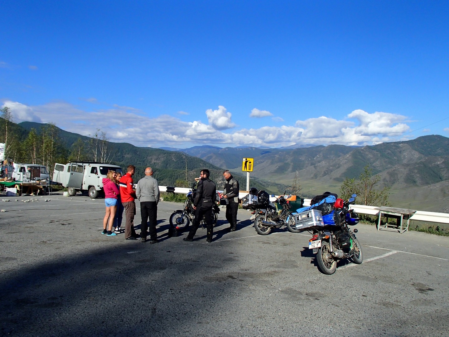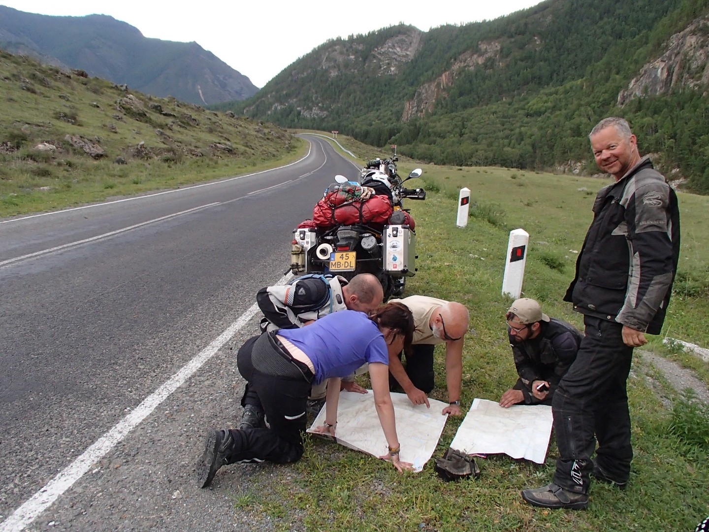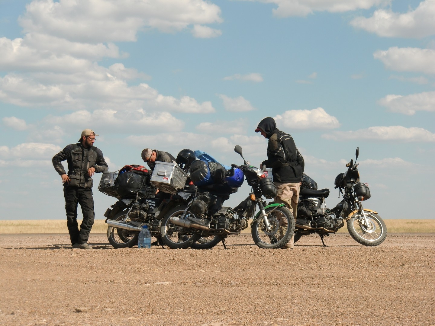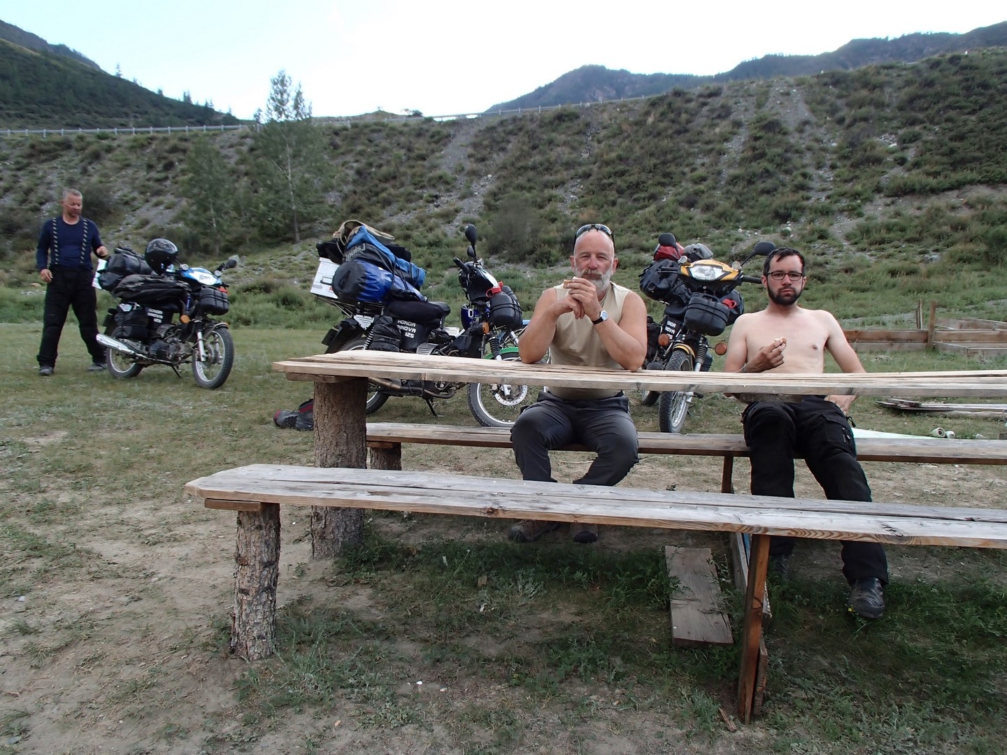 Die erste Nacht auf Russlands Boden war sehr erholsam. Der Nervenkrieg gestern beim Grenzübergang hat Kraft gekostet. Wir hatten gestern Abend noch etwas auf unsere "Ankunft" in Russland angestoßen, die Erleichterung war allen anzumerken. Wir lagen zwar noch zeitlich einigermaßen im Plan, trotzdem wurde es jetzt auch mal endlich Zeit 'Kilometer zu machen'. Direkt hinter der Grenze fuhren wir auf Asphalt, und wir alle waren heiß drauf es mal wieder richtig laufen zu lassen. Über 2 Wochen waren wir jetzt mit der ultra-kurzen Übersetzung (55er Ritzel) unterwegs, sind trotzdem tagelang auf Schotter und im Tiefsand oft nicht aus dem 2. oder 3. Gang herausgekommen und abends stand nicht einmal ein 20er Schnitt auf dem Garmin. Das muss sich jetzt ändern, es war Zeit zum Umbauen angesagt... :mrgreen: