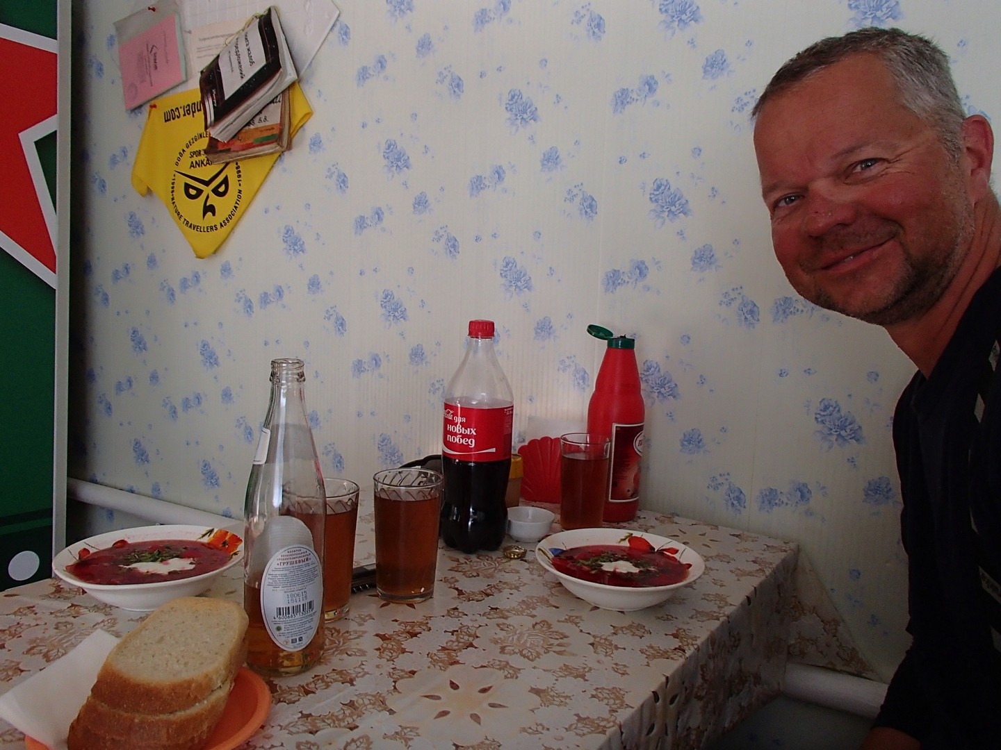 Reinhard hatte noch ein paar Rubel und wir mussten auf das Ereignis erst einmal shoppen gehen, direkt in dem kleinen Grenzdorf 'Tashanta'. Das Angebot war schon mal deutlich größer als noch in der Mongolei :mrgreen:
