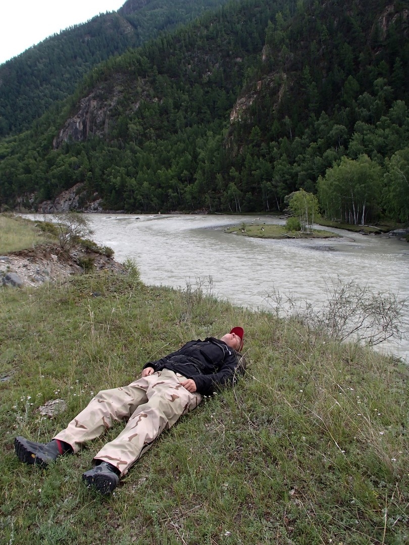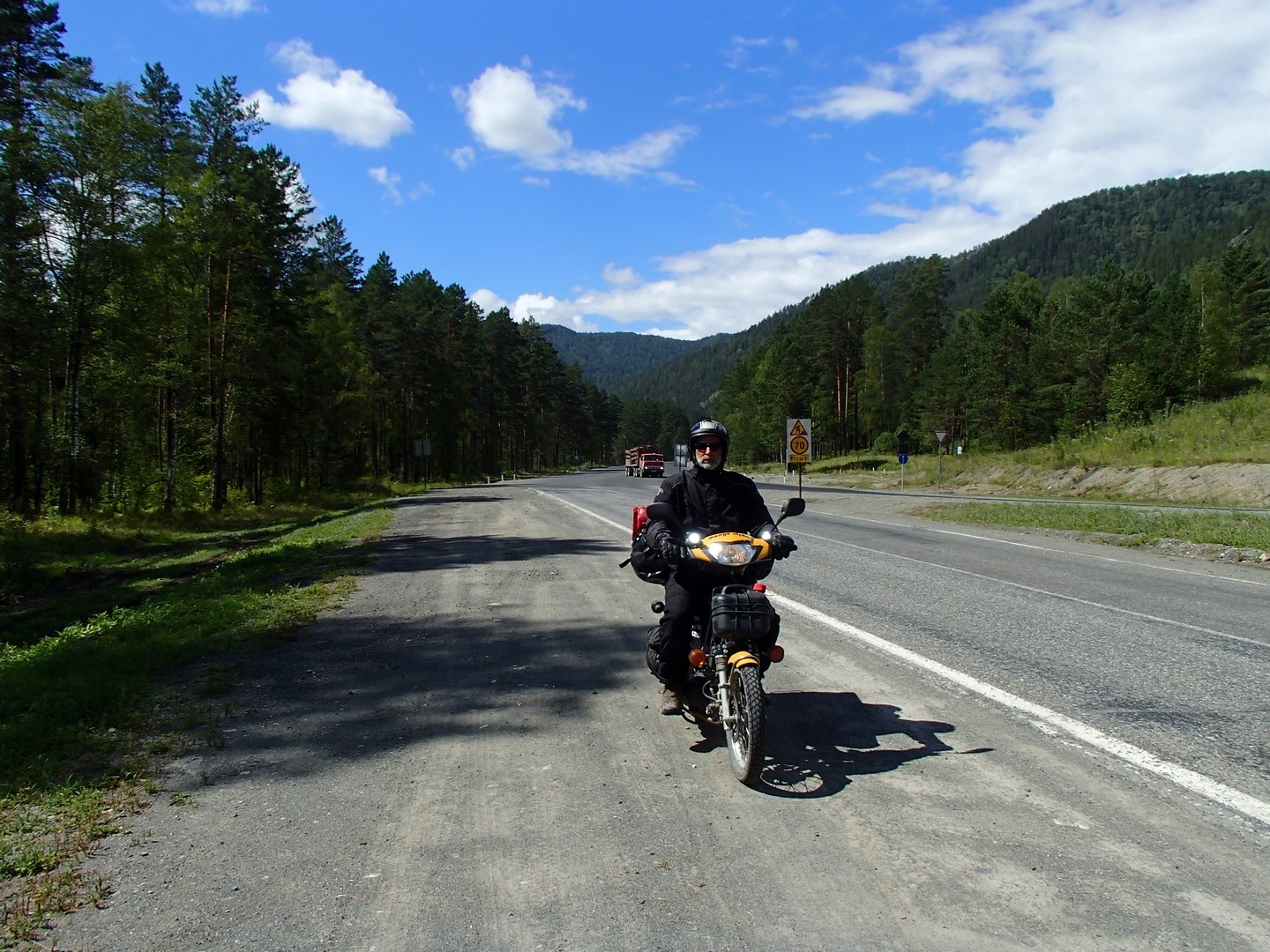 Um 9.00. Uhr waren wir mit dem Umbau fertig, fuhren alle wieder 14-35 und ließen die Mongos bei strahlend blauem Himmel und 25 Grad mal so richtig marschieren. Eine traumhafte Landschaft erwartete uns, Berge, grüne Wiesen, Flüsse und topf-ebener Asphalt, man konnte meinen wir fuhren durch die Alpen...welch ein Gegensatz zur kargen Mongolei. Wir alle bekamen das Grinsen nicht mehr aus dem Gesicht, einfach nur GEIL!! :P