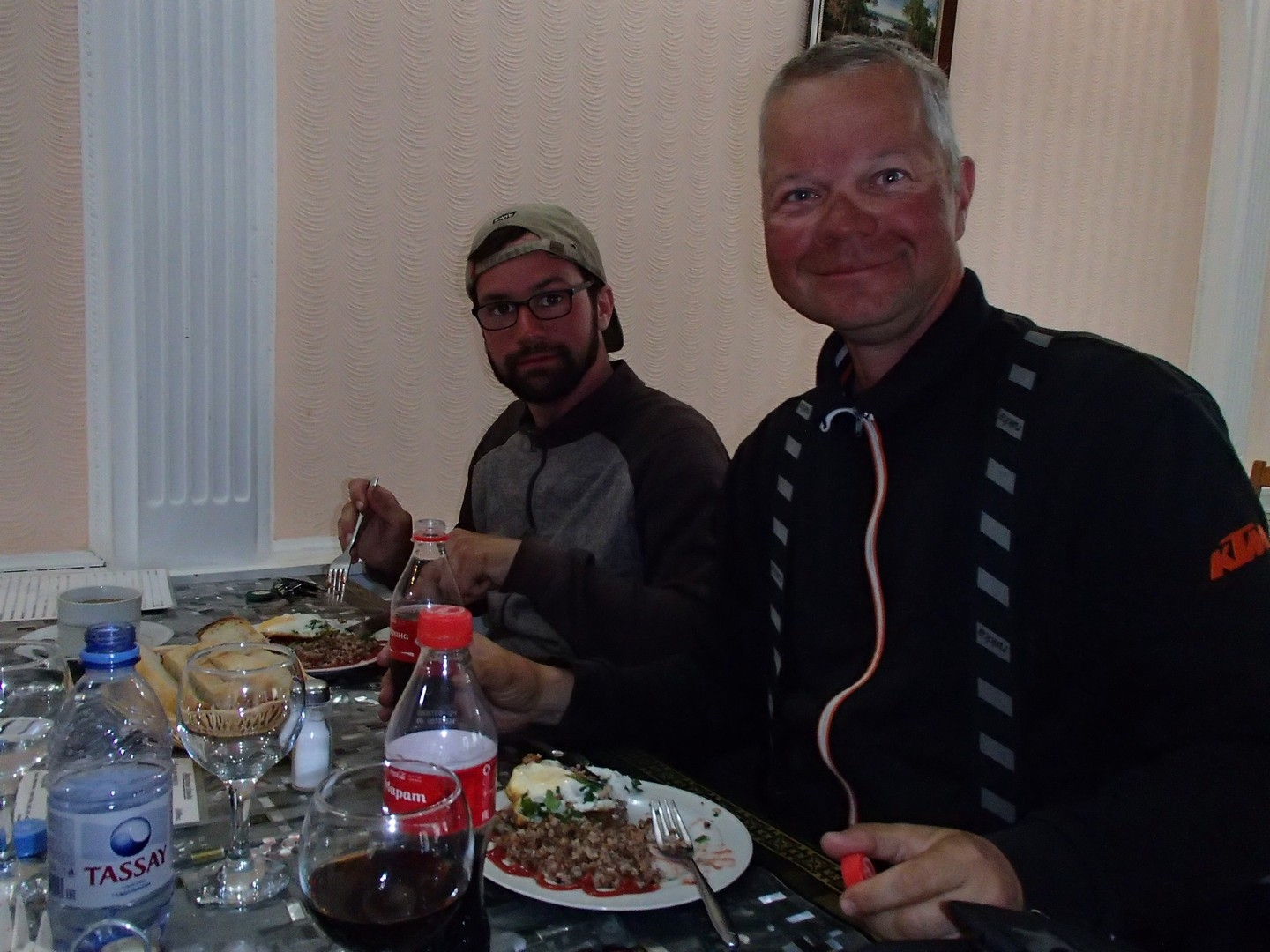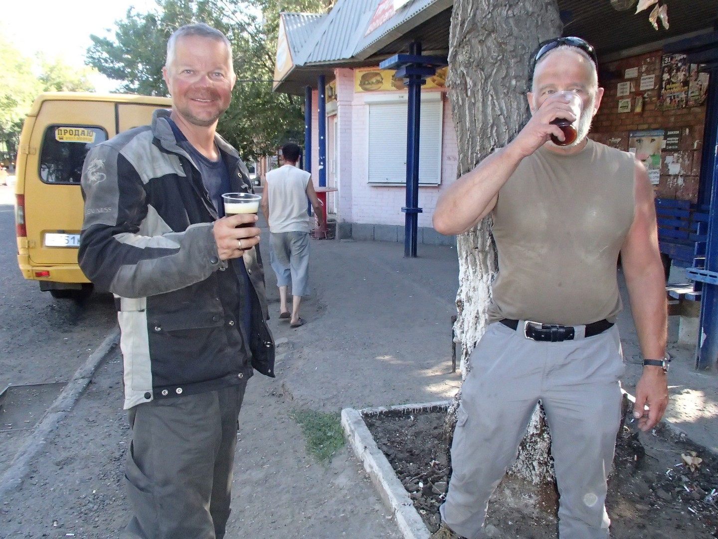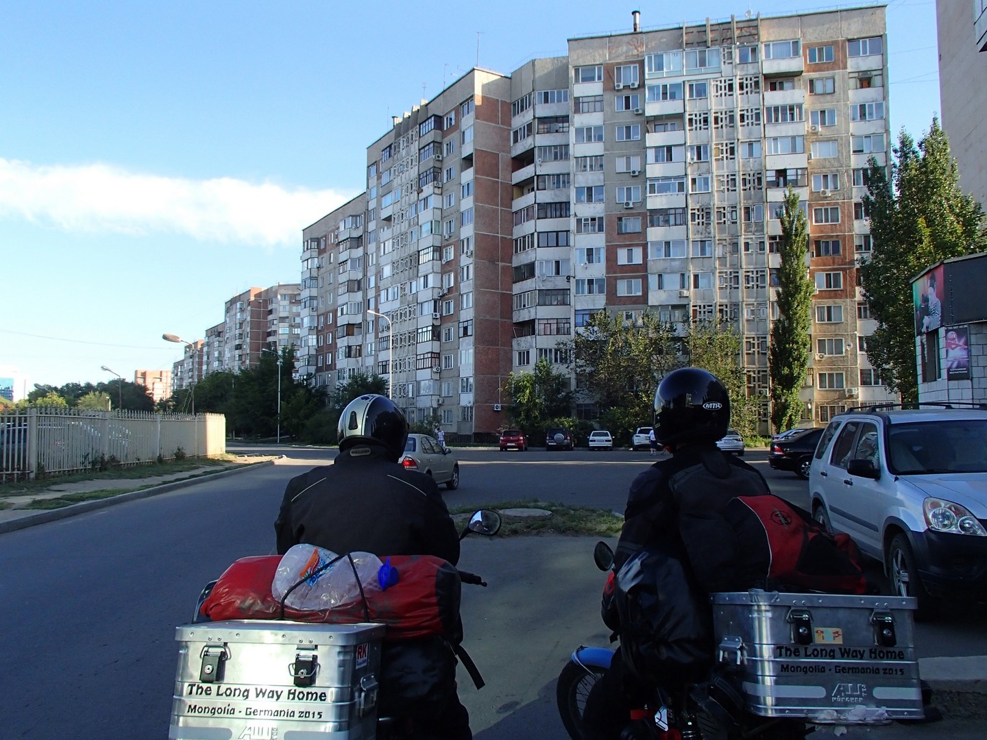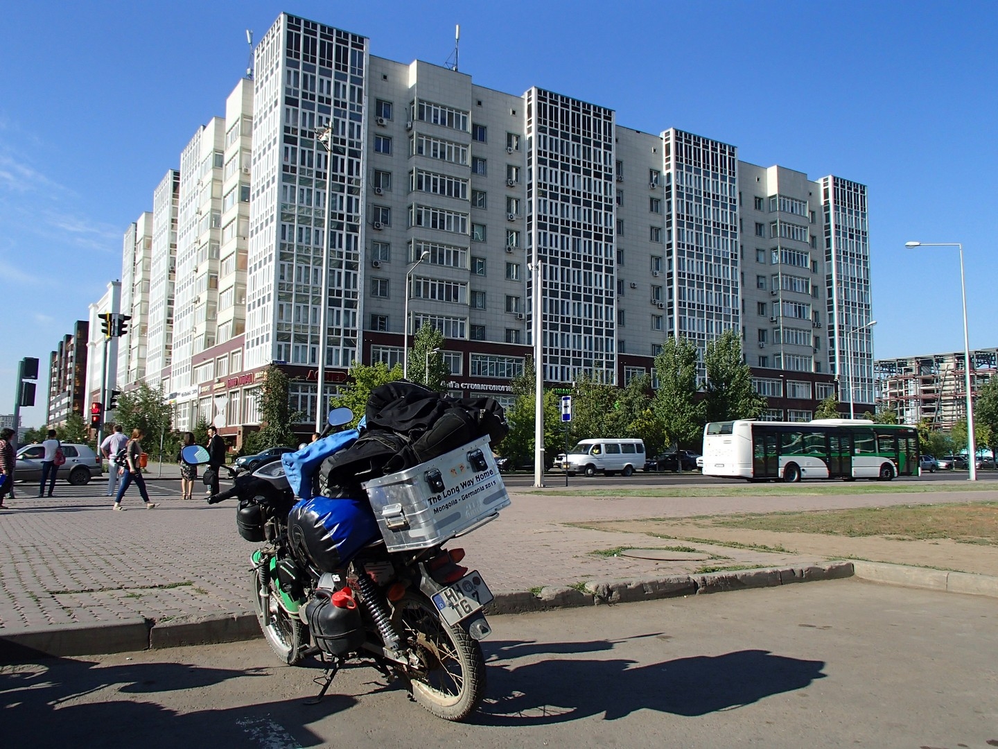 Nachdem wir bis tief in die Nacht im Netz nach Infos für die Visumbeantragung in Uralsk gesammelt haben konnten wir erst einmal nichts weiter tun als zu warten. Im Forum gab es viele weitere Tips und wann immer es irgendwie Martin möglich war nahm er Kontakt zu uns auf und gab uns einen Lagebericht von unterwegs. Wir nutzten die Zwangspause dort um Körper, Geist und Technik wieder auf den Vordermann zu bringen. Nach gutem Frühstück im Hotel ging es zu Fuss raus die Lage dort erkunden. Proviant für unterwegs wurde im kleinen Shop nebenan gekauft. Die Dame rechnete noch mit einem Abakus :mrgreen:
