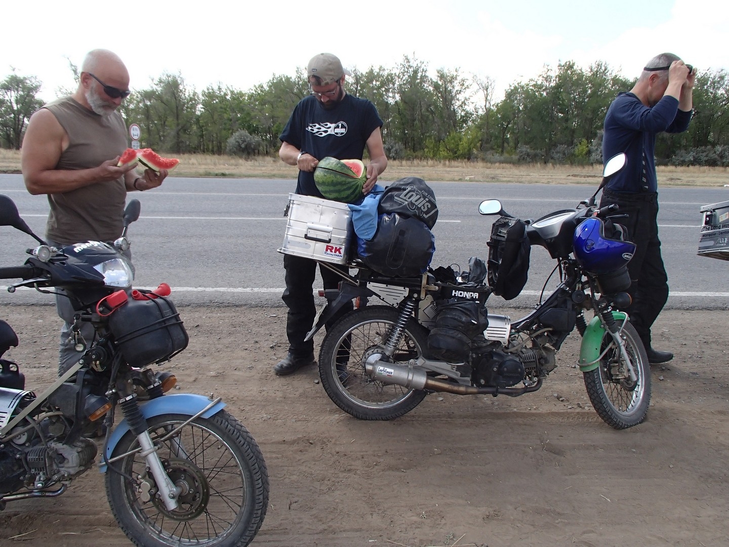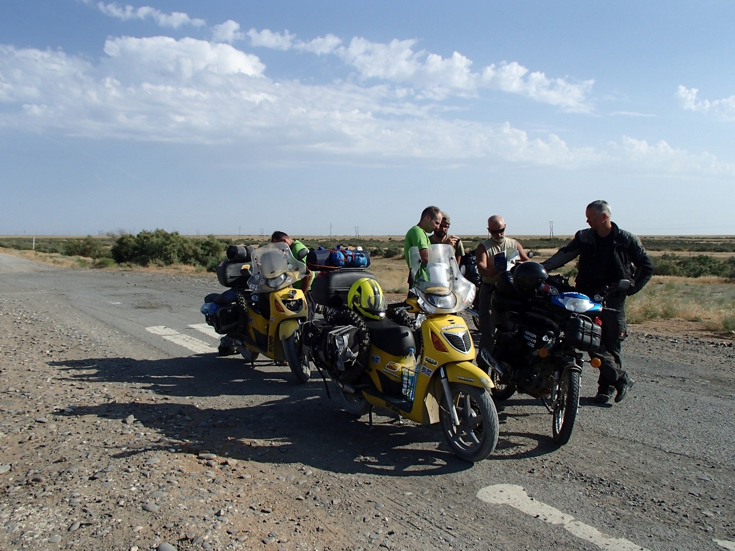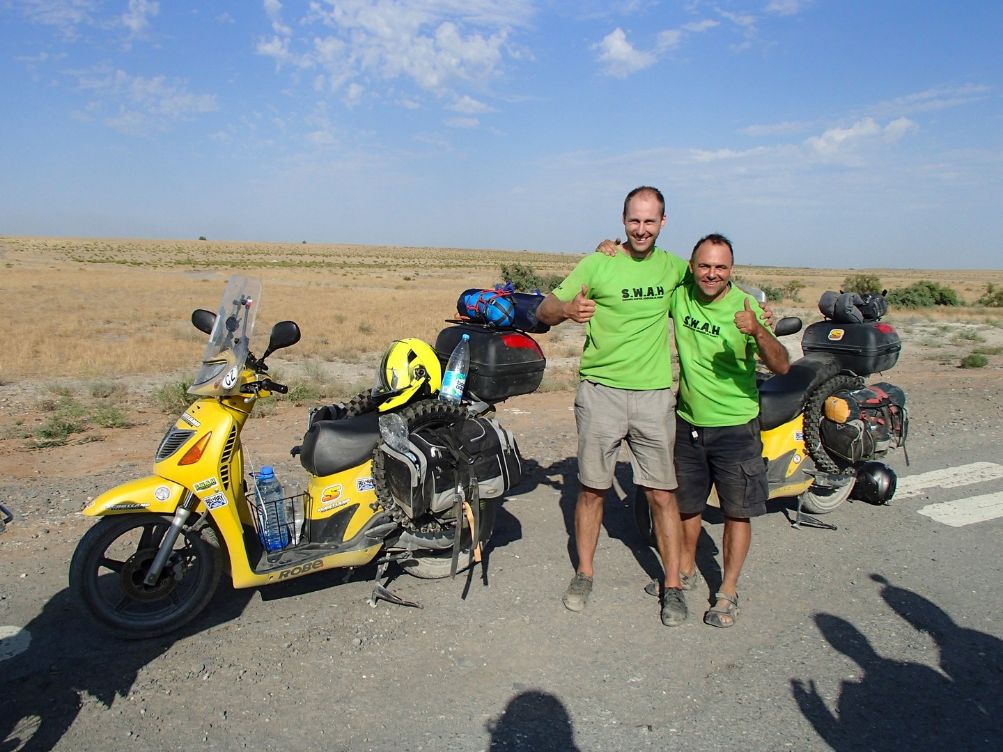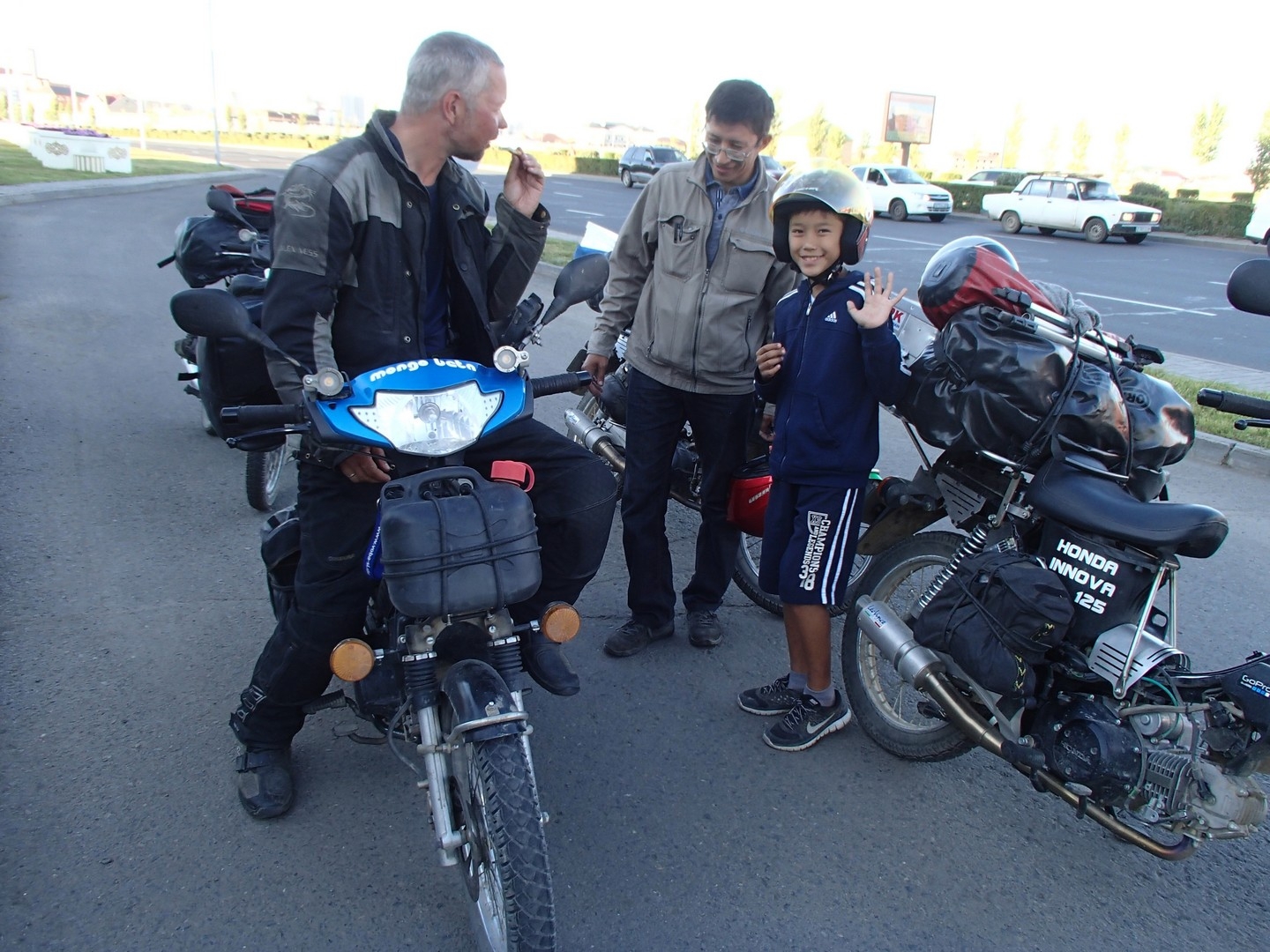 Einer der beiden spricht sogar etwas deutsch. Sie sind auf einer großen Asienrunde unterwegs und wollen noch bis zum Aralsee. Einer ihrer SH150 hatte bereits einen Motorschaden und kurzerhand musste jemand ein Flugzeug nehmen und hat von zuhause im Handgepäck einen Ersatzmotor geholt. Verrückte Jungs, genauso wie wir :laugh2:
