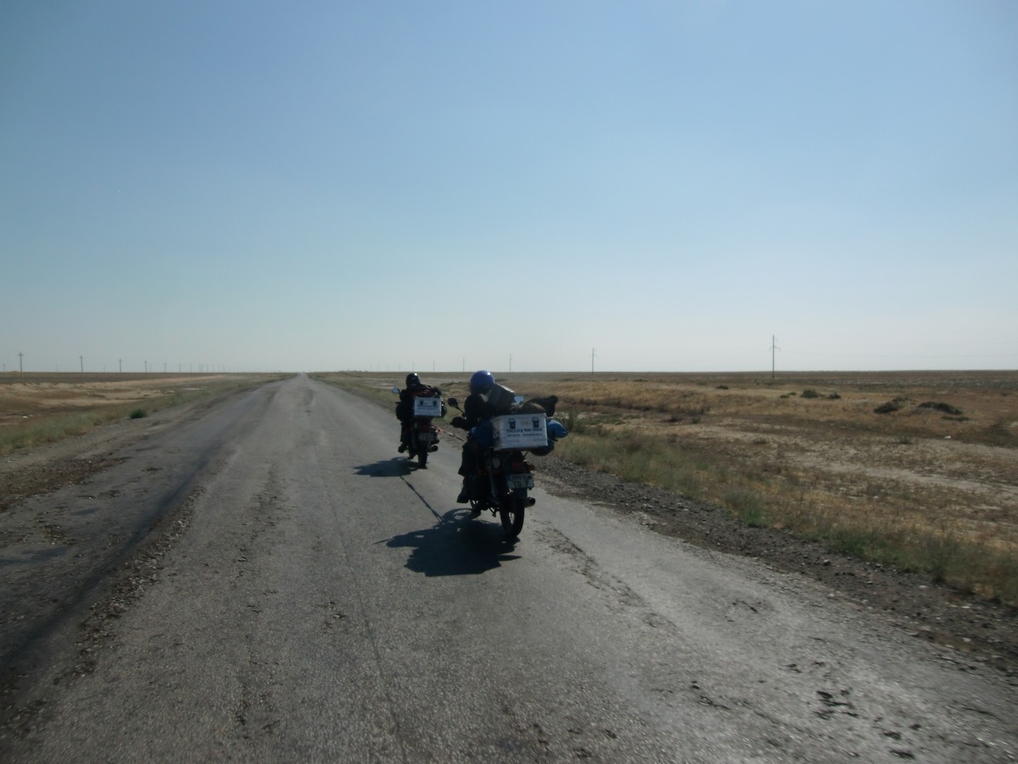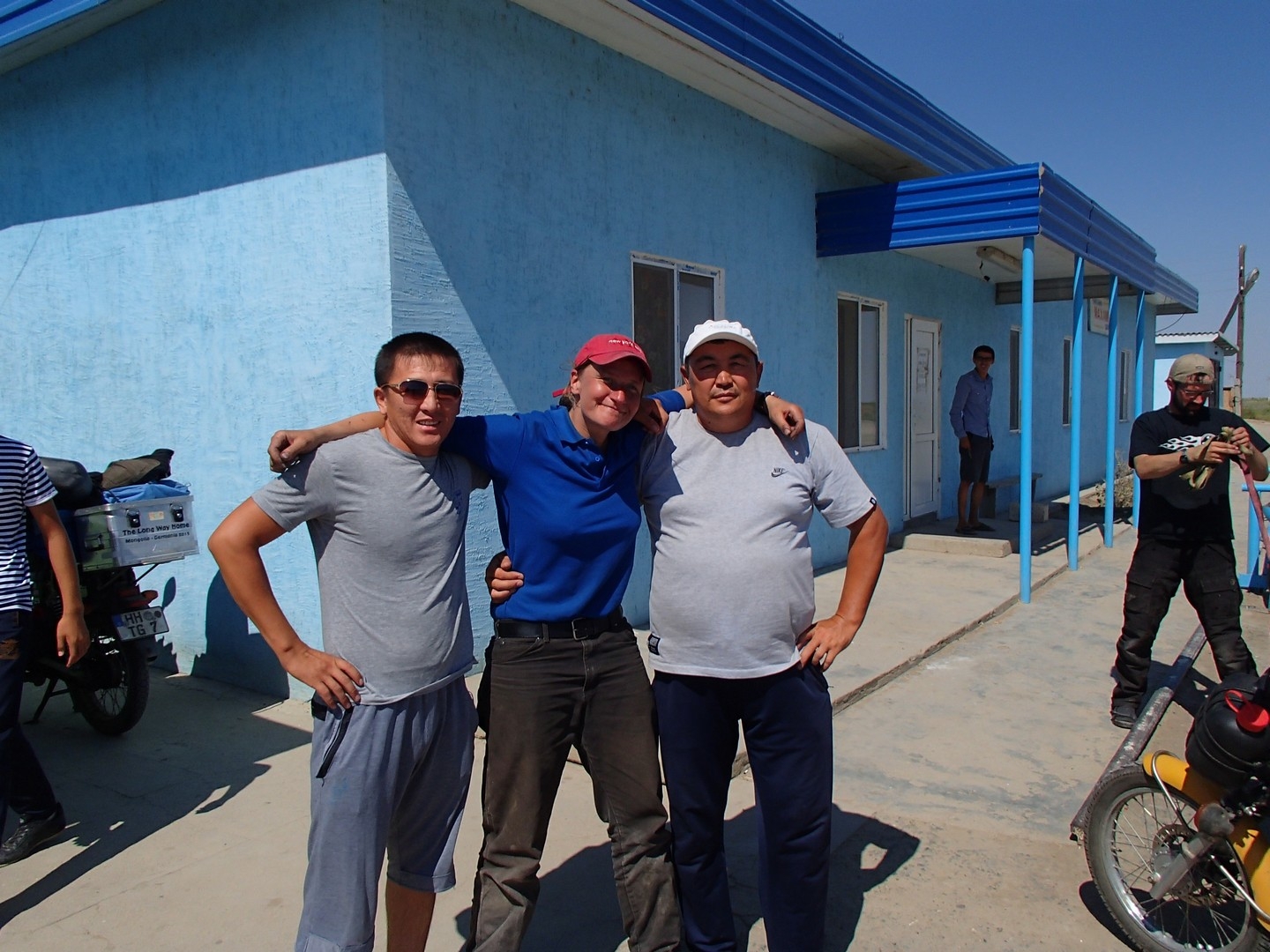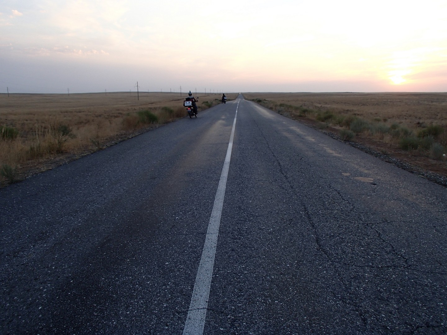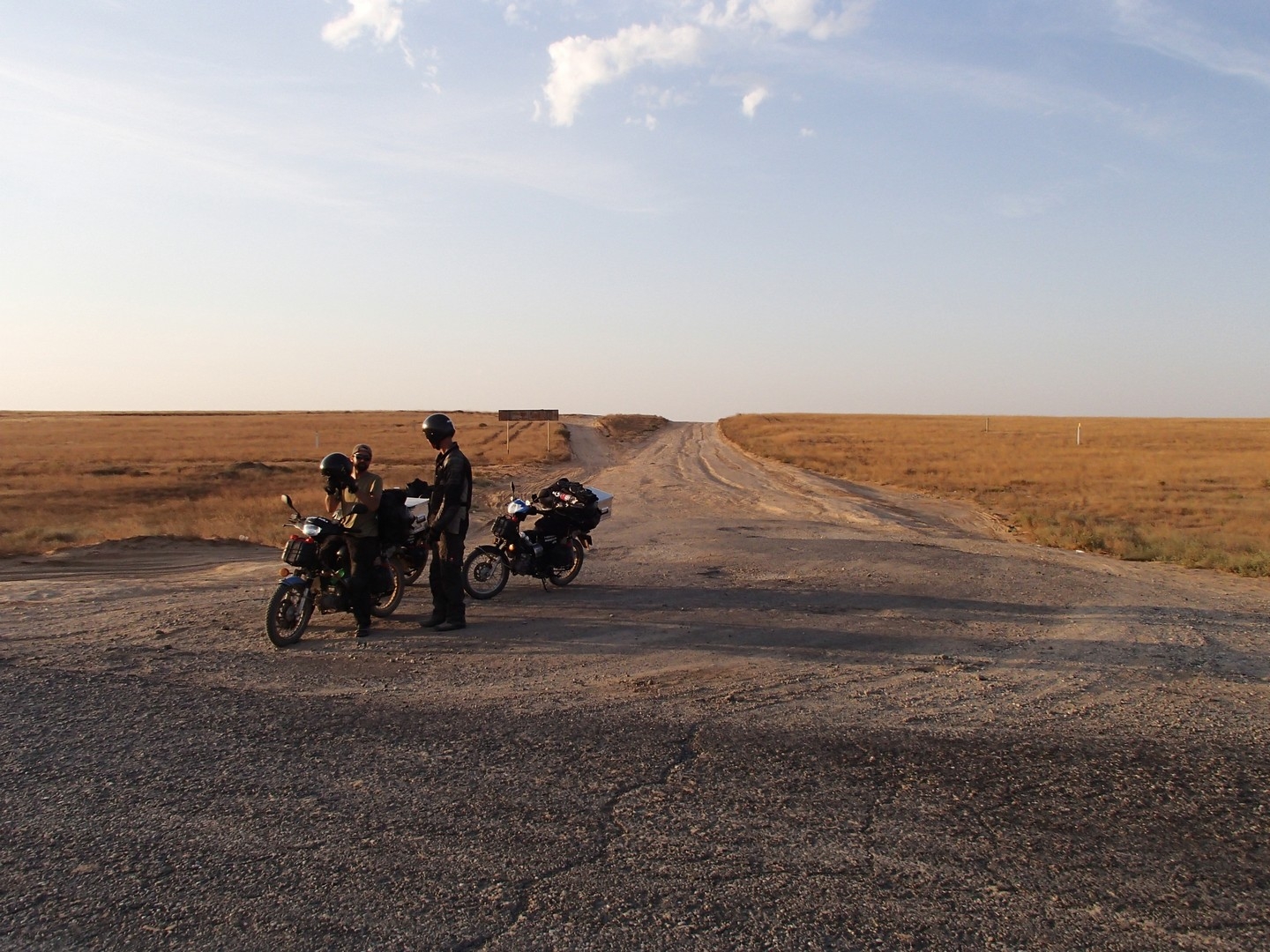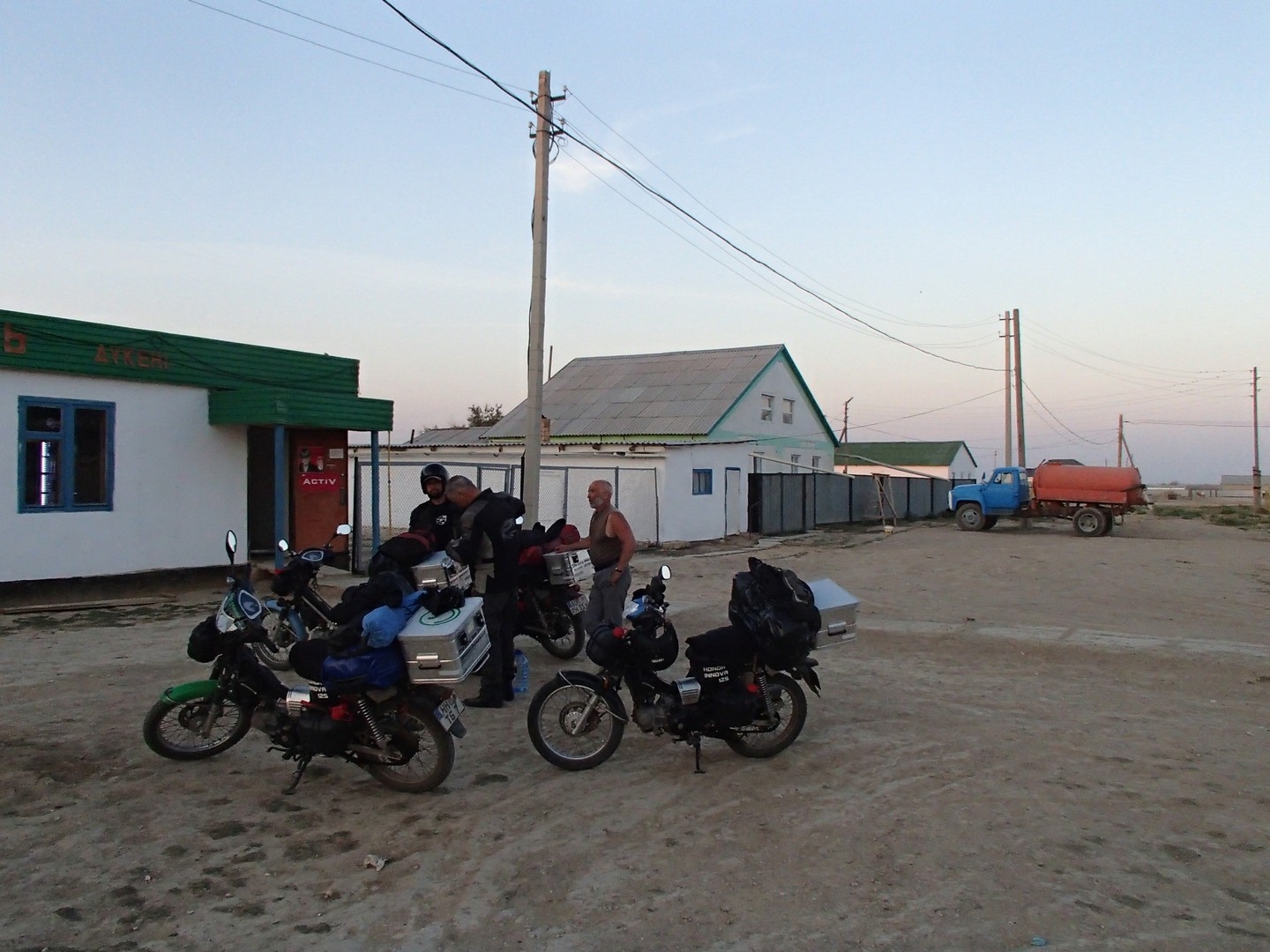 Wir fuhren dann weiter und fanden nach doch etwas längerer Suche ein kleines Hotel, sehr schön und idyllisch an einem Kanal gelegen und checkten dort ein. Hier wollten wir klären wie es weitergeht. Wir waren noch völlig ratlos, konnten aber schon mit Martin per SMS in Kontakt bleiben. Von ihm erfuhren wir, dass er bereits auf dem Weg nach Uralsk war. Dort ist das nächste Russische Konsulat wo er hoffentlich schnell und komplikationslos ein neues Visum bekommen kann. Trotzdem bedeutet dieses im Idealfall eine Fahrt hin & her von knapp 1.600 Kilometern, auf sich alleine gestellt und auf katasrophal schlechten kasachischen Straßen, ohne Werkzeug oder Flickzeug weil dass hatten wir ja an unseren Mongos verteilt. Uns wurde bleich im Gesicht als wir uns vorstellten, in welcher Lage Martin jetzt ist und welche Anstrengungen in den nächsten Tagen auf ihn warten :o