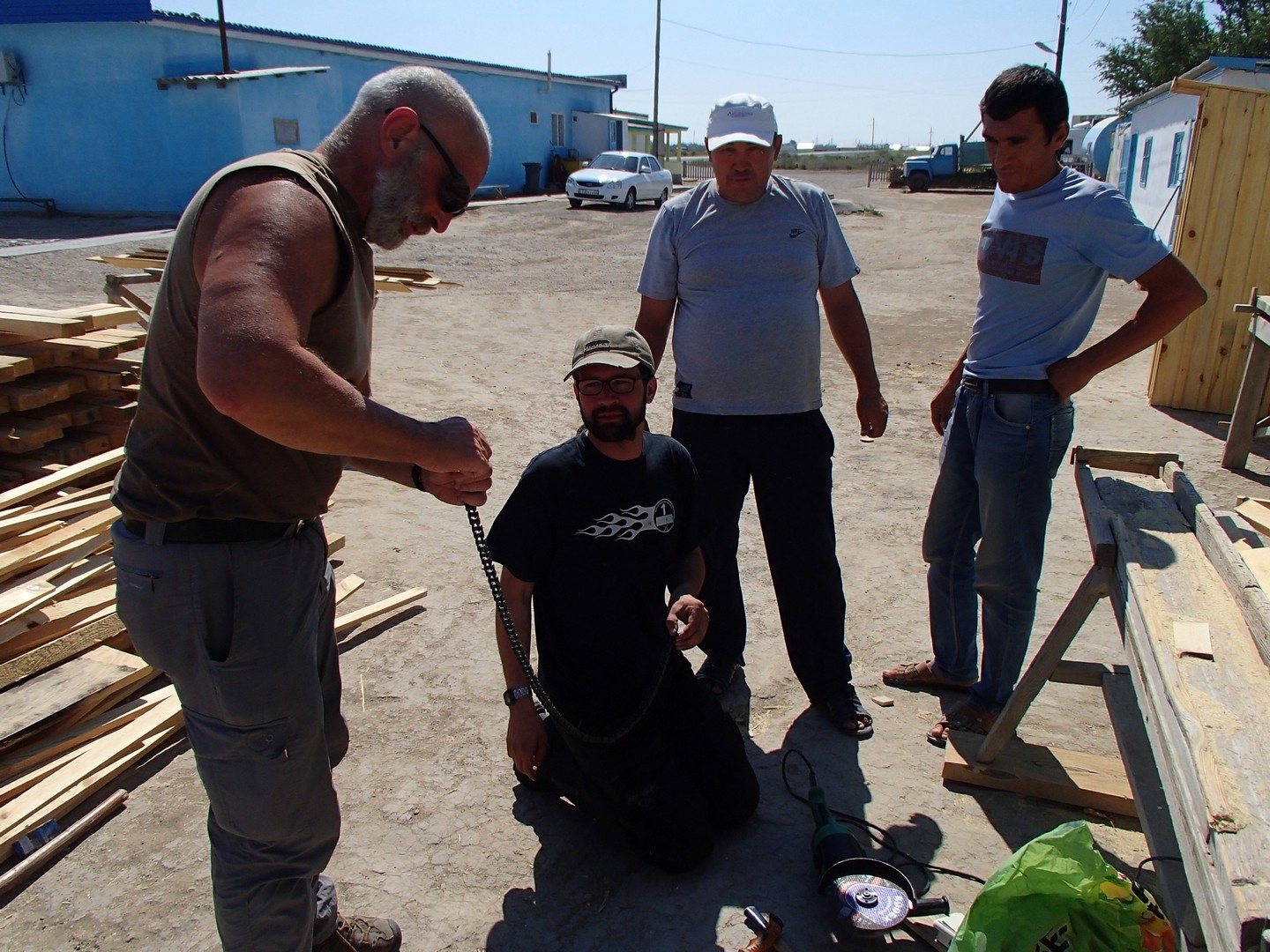 Marin hatte ja bei der Abreise in Ulan Bator im OASIS seinen Klappstuhl dort vergessen und musste seitdem abends auf seinem Helm sitzen. Ein unhaltbarer Zustand :lol: Als kleines welcome-back-Geschenk haben wir daher keine Kosten und Mühen gescheut und ihm den besten Super-Duper-Hyper-Campingklappstuhl von ganz Astrakhan besorgt, Martins Freude kannte keine Grenzen, endlich wieder vernünftig sitzen :prost2: