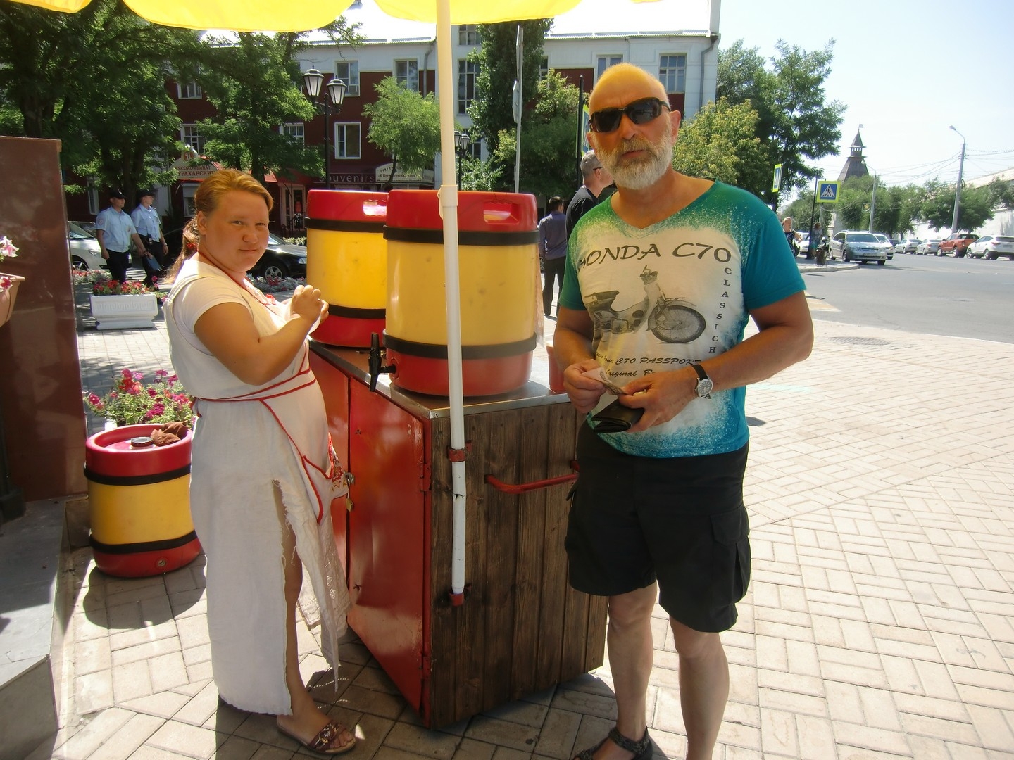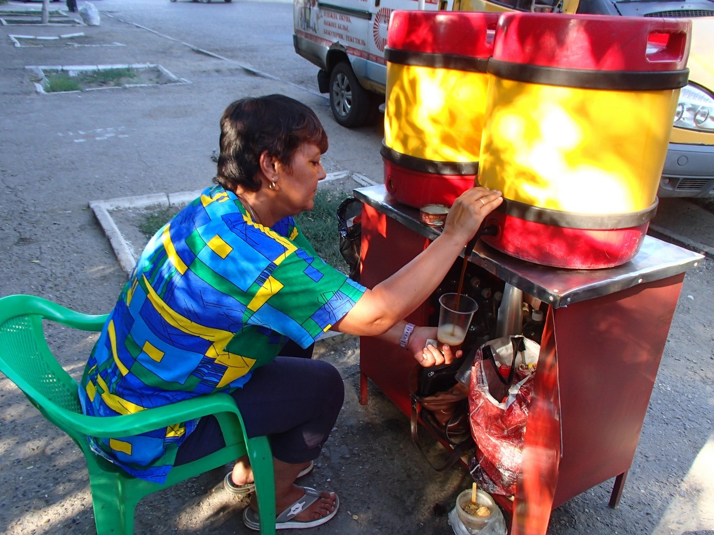 Die erfolgreiche Montage musste natürlich begossen werden und wir gönnten uns einen frisch gezapfen "Brot-Saft", den man dort an jeder Ecke kaufen konnte. Etwas eigenwillig im Geschmack, aber eiskalt serviert ein schöner Durstlöscher: