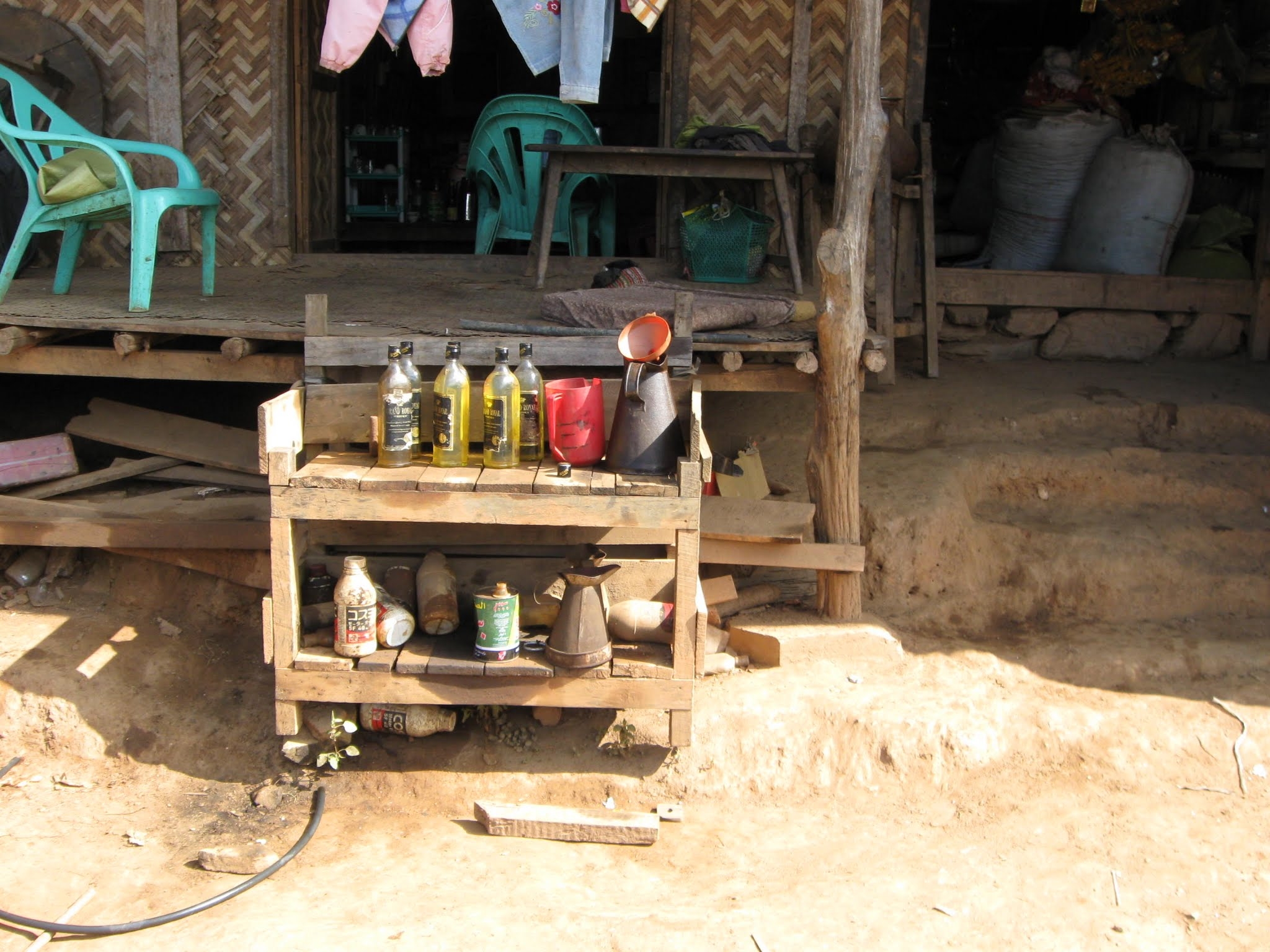 Der Candatank ist sehr klein. Auch wenns in der Bedienungsanleitung anders stand. Da gehen grad mal 3 Liter rein. Und so ist Franz, (zum Glück erst nach unserer Offroadstrecke) auf einer asphaltierten Straße in einem Dorf der Sprit ausgegangen. Ich bin kurz vor auf Benzinsuche gefahren. Keine 300m hab ich dann gleich einen Benzinverkäufer entdeckt. Daher heißt es jetzt etwas schieben.