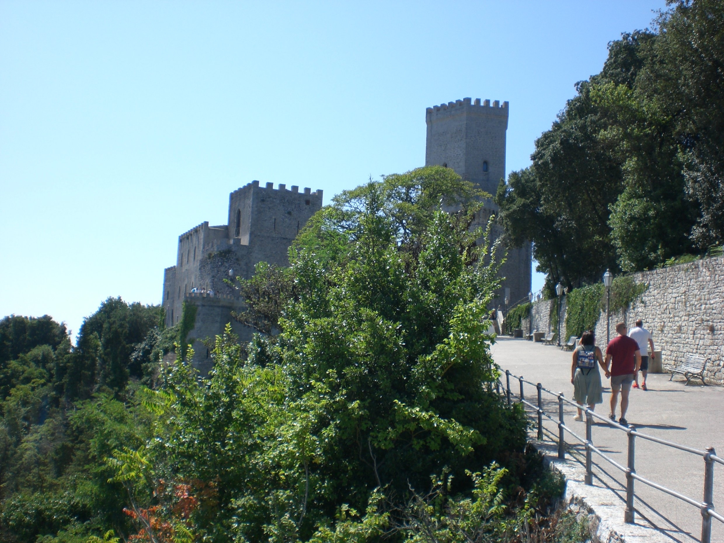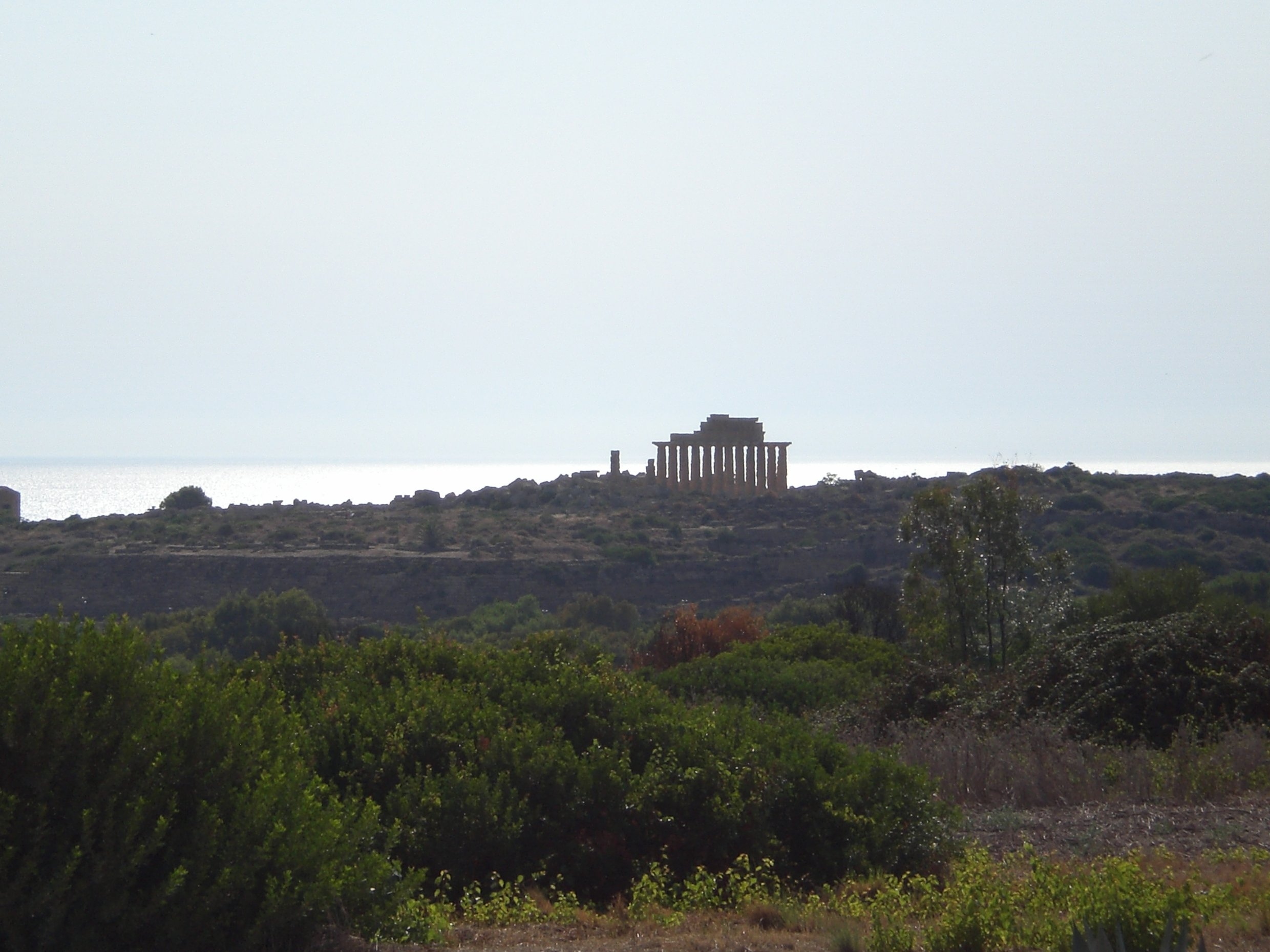 Erstes Ziel ist Erice auf einen Felssporn gesetzt. Mittelalterlich, touristisch überlaufen und preislich vesaut, viele "Ticketschreiber" in Uniformen, welche denen eines Operettengenerals gleichen. Durchlaufen, Beweisphoto, "mezzo litro di Aqua minerale frizzante et un café", mein Standardsatz. Bekomme immer was ich möchte, und wenn ich an der Bar stehen bleibe das Ganze für zwei €! Geht doch! Weiterfahrt durch das flacher werdende Land und viele Weinberge. Ab und an brennt es. Oft am Strassenrand. Da stehen dürre hohe Gräser, welche bis in die Strasse hinein brennen. Feuerwehr? Fehlanzeige! Wird schon wieder ausgehen. Hier um die Gegend von Marsala bauen sie hauptsächlich Wein an. Was seh ich da? Ein riesiges Schlagloch. Kann zum Glück noch gut bremsen. Ein Fahrer eines LKW mit Traubenkisten hatte wohl weniger Glück. Ein undefinierbarer Geruch, wie aus einer Wein-u. Essigflasche zugleich, lag in der Luft. Die Brühe im Schlagloch und die Traubenstengel auf der Straße. Ein paar Insekten flogen besoffen Loops und Turns. Immer weiter nach Selinunt. Kaum ein Auto auf der Straße. Die Luft flirrt über dem Asphalt. Keine Tanke weit und breit. Gibt es an der Küste an jeder Ecke eine, so ist´s im Hinterland zappenduster. Zum Glück habe ich mir noch ein Gestell aus Flachstahl mit drei Liter-Kanister an den Frontkörbchenhalter (Doppel D) gebastelt. Er kommt nun zu Ehren, ein paar Kilometer weiter sehe ich mir die Bauwerke der alten Griechen an. Weil das so schön ist geht´s gleich weiter nach Agrigent in das "Tal der Tempel". Zuerst aber auf den Camping und nach Aufbau in den Pool, dann äußerliche Dusche mit Seife und Wasser, dann innerlich mit o,66 "Tuborg green."