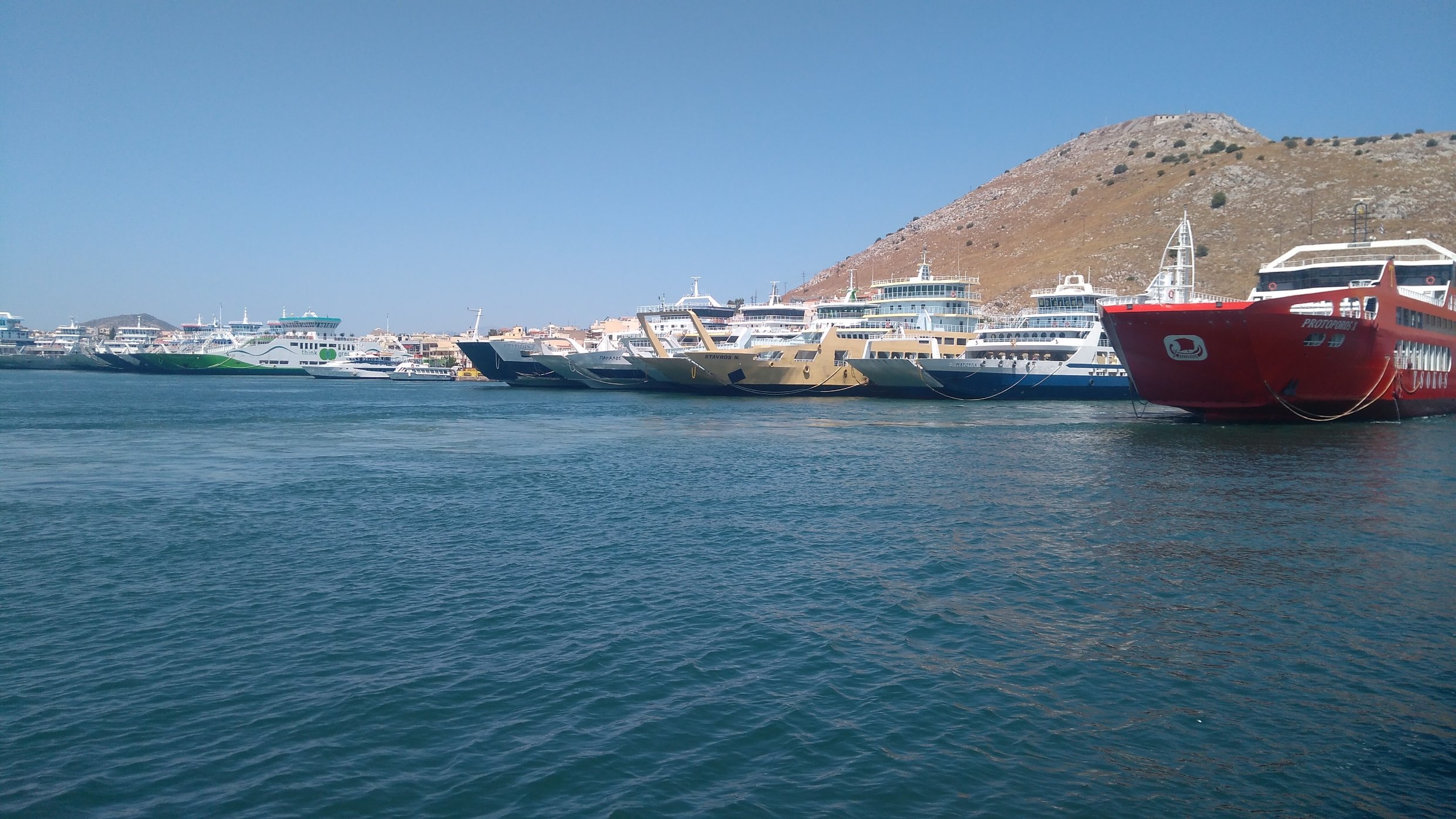 In Lavrio fahre ich erstmal zum Hafen an die Ticketbox. Der Streik ist vorbei, es fährt alles nach Fahrplan und ich bekomme alle drei Tickets wie vorab geplant bis auf Kos, perfekt. Ich treibe mich noch etwas am Kai rum und werde irgendwann von einem Uniformierten zurückgepfiffen. Es kommt eine Fähre und er will die Übersicht haben, wer rein und raus geht. Er erzählt etwas über die Flüchtlingssituation, für die Syrer hat er volles Verständnis, für manch andere ist das nicht so ausgeprägt.