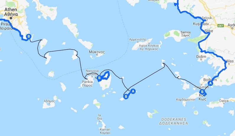 Vor Piräus kürze ich mit zwei Fähren über die Insel Salamina ab.