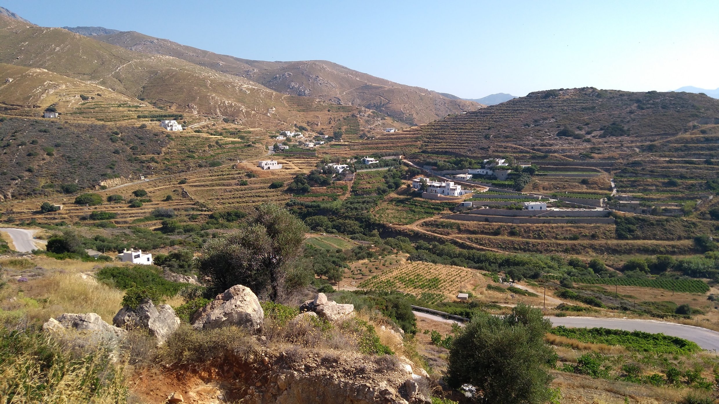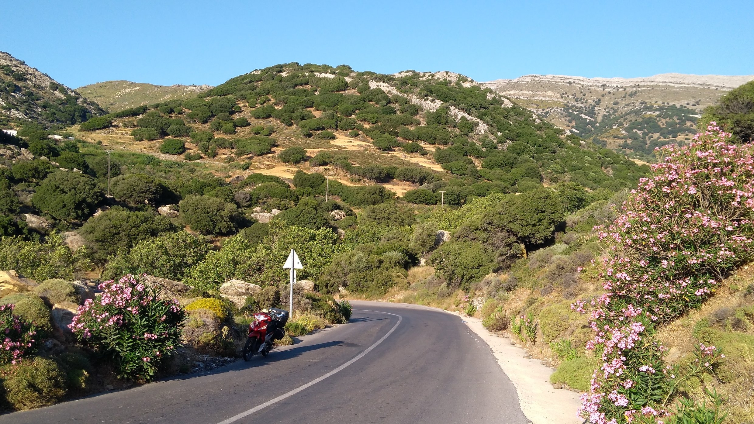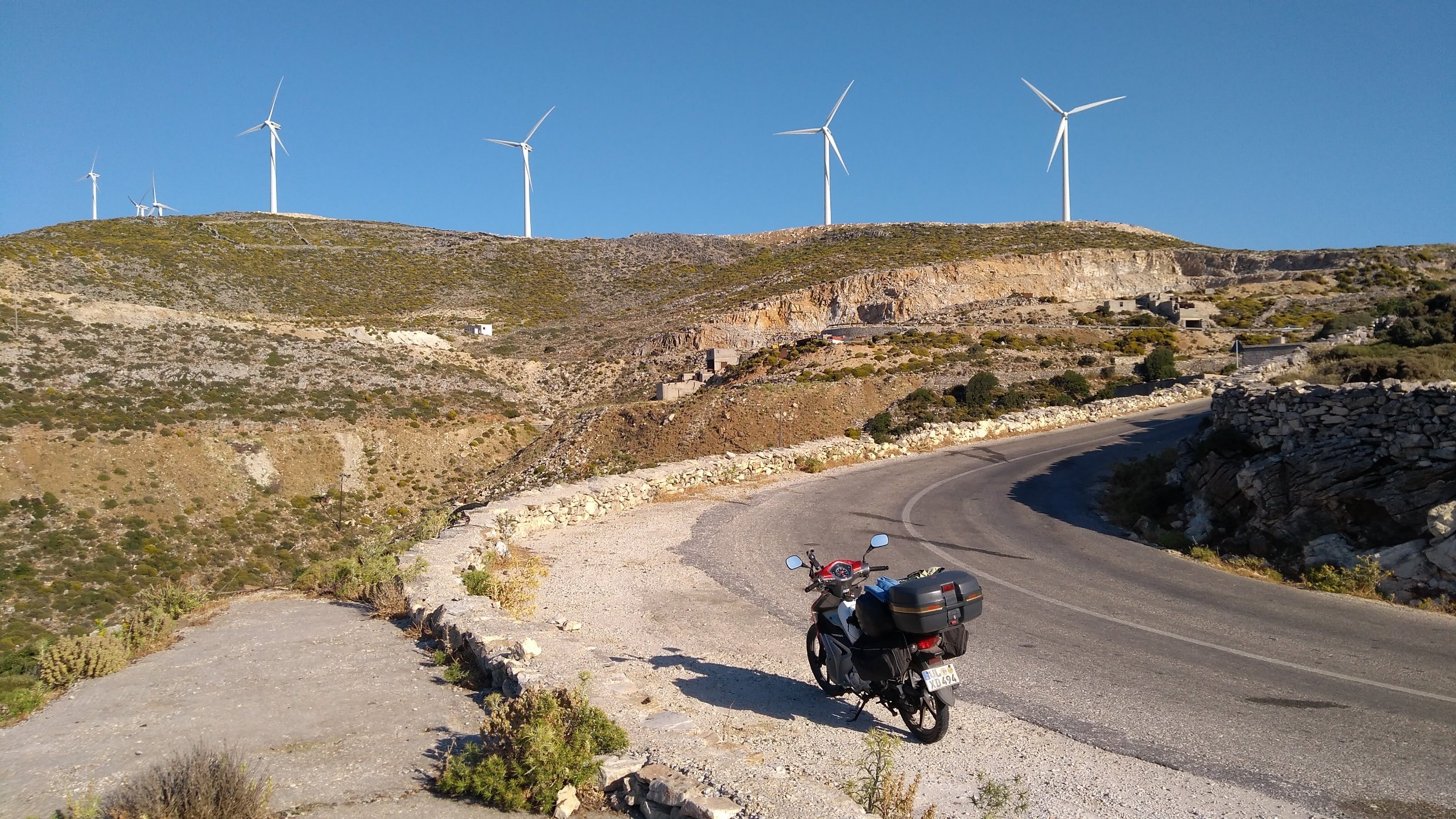 Auf Naxos angekommen fahre ich gleich los auf eine Runde in den Norden, es gibt sehr wenig Verkehr, das häufigste sind noch die kleinen Mietwagen der Touristen. Interessante Landschaften, ein paar antike Stätten, es ist auf den Inseln nicht zu heiß, die Vegetation wuchert mancherorts in die Straße, es ist die totale Entspannung.