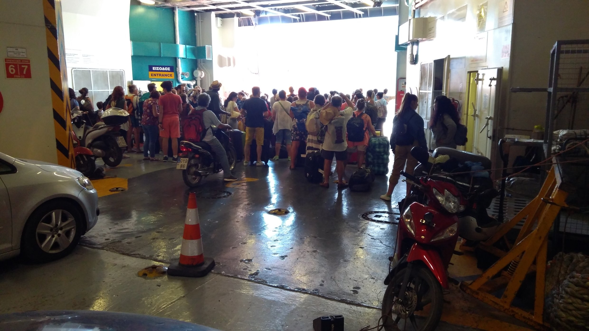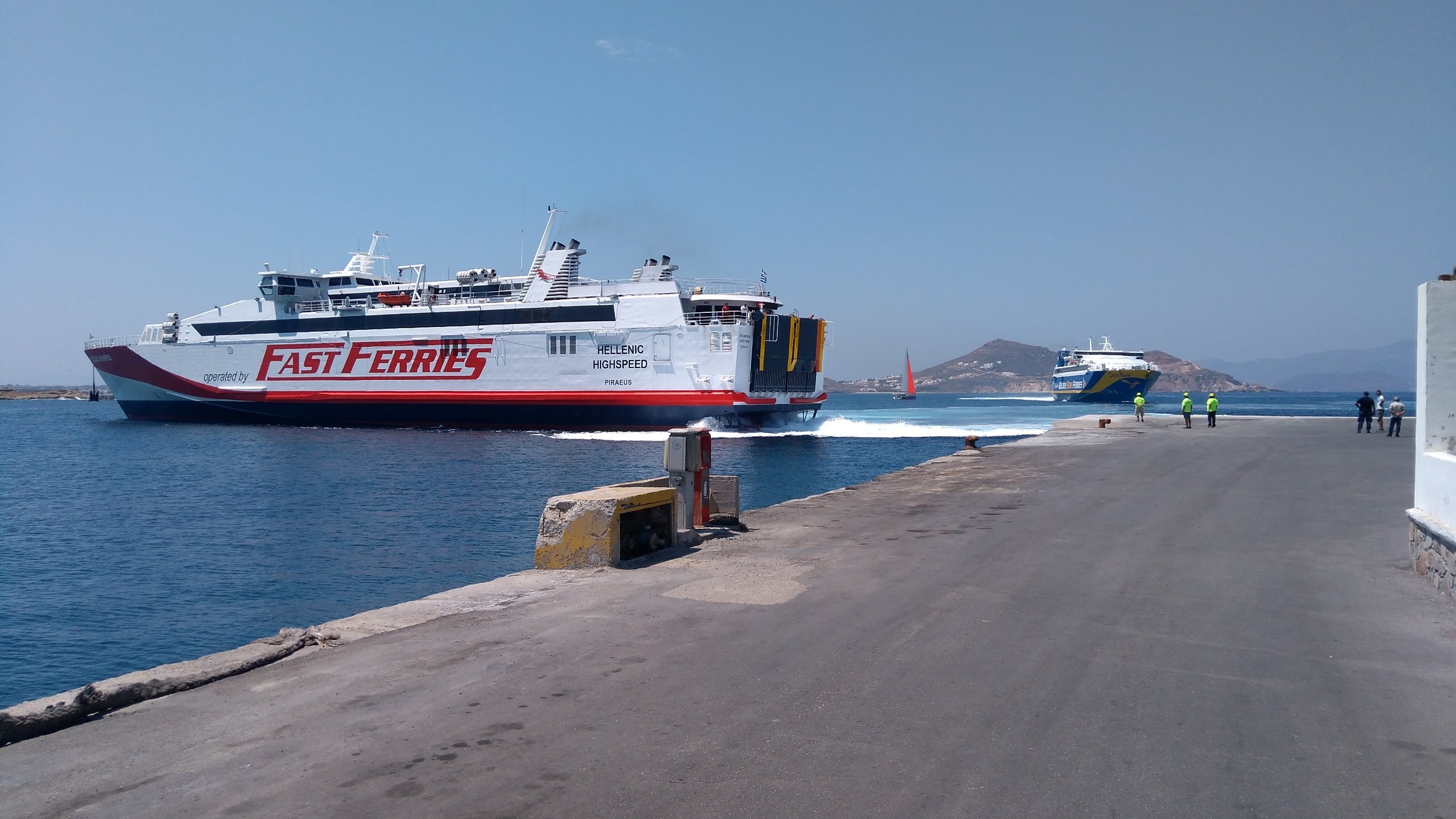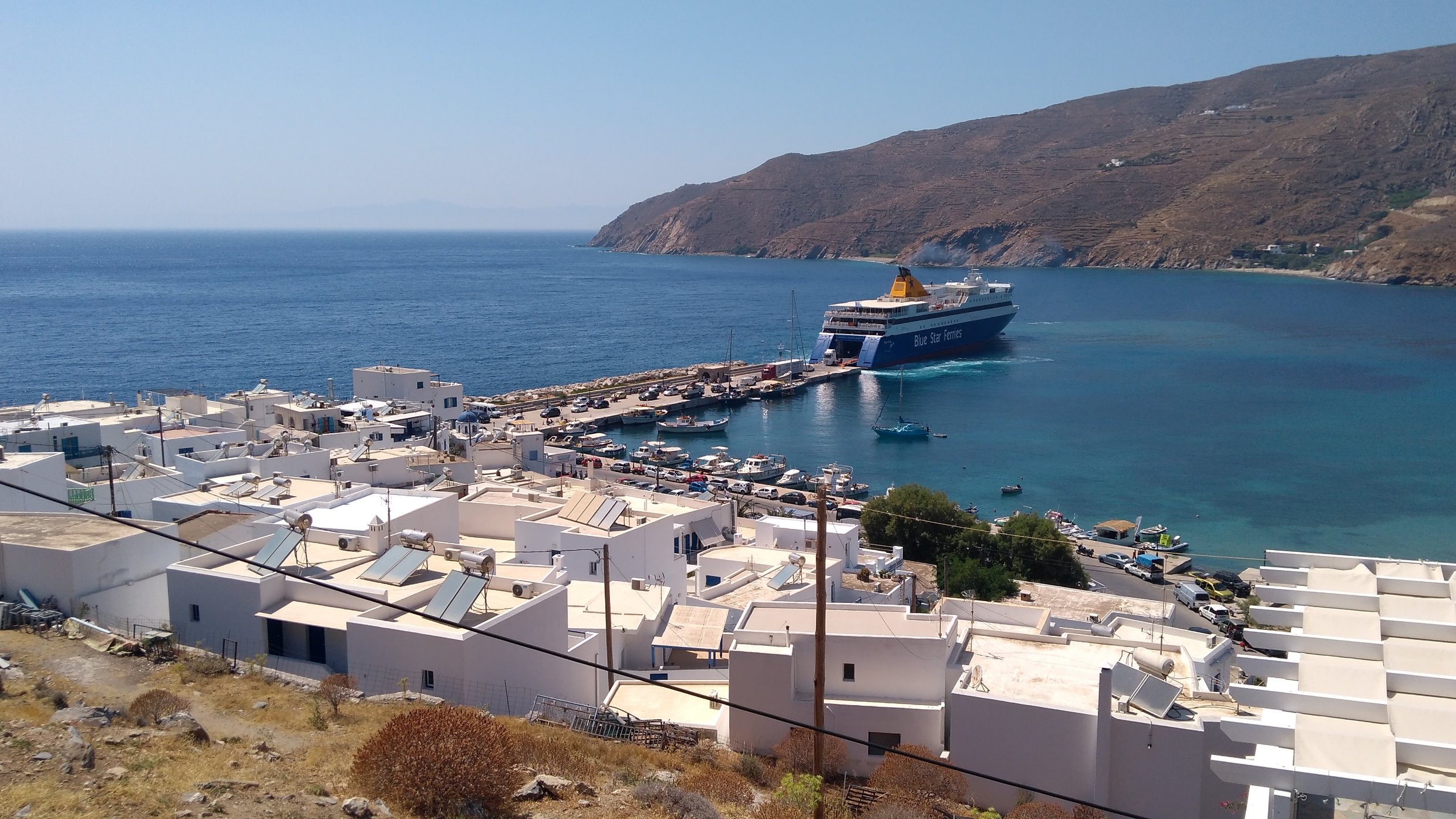 Am Hafen ist wieder einiges los, Fähren kommen und gehen, und dann kommt mit etwas Verspätung auch mein Schiff, die Blue Star Naxos.