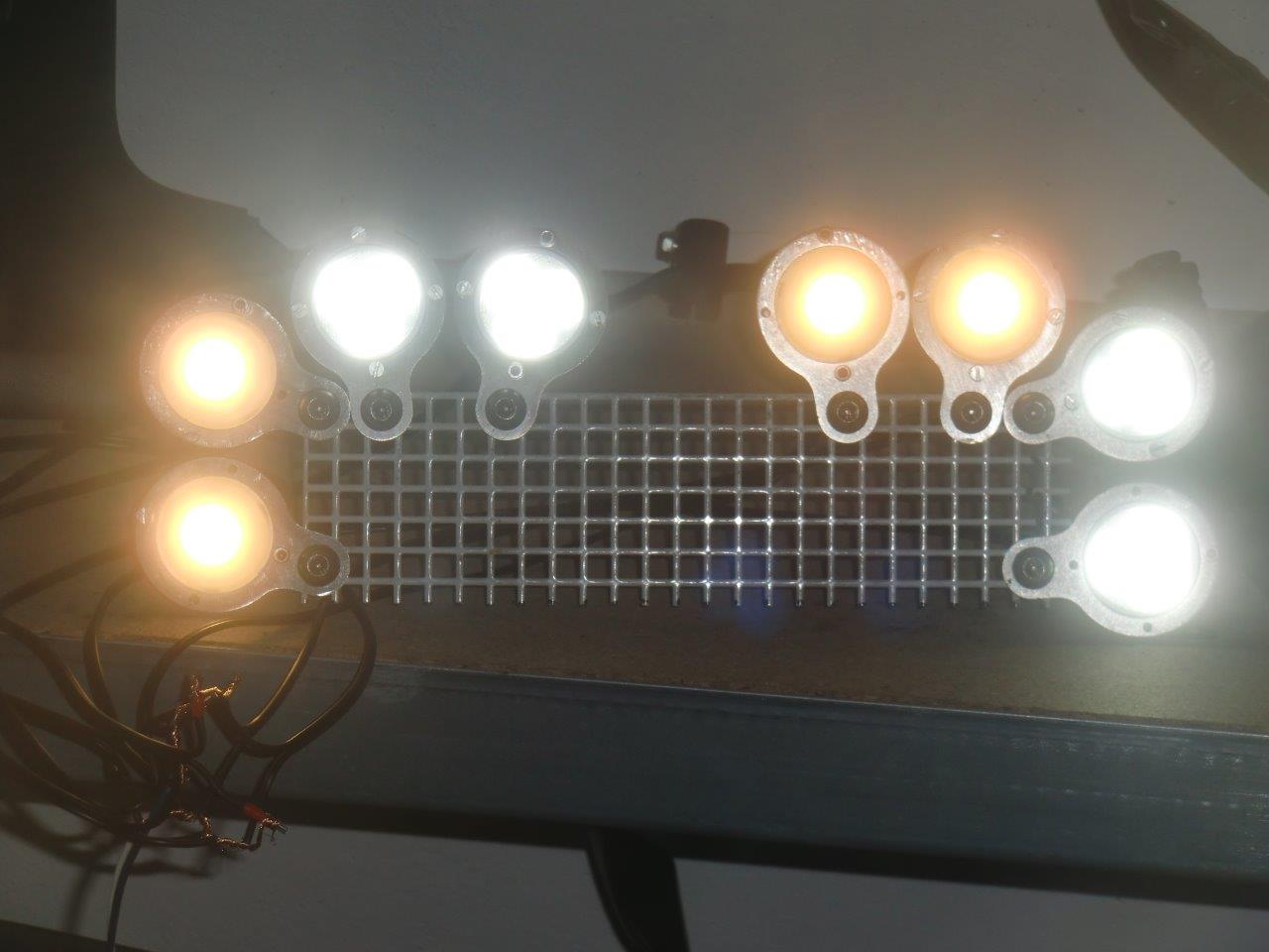 Zunächst mal die neuen vorderen Blinker und die Laserteile für die Zusatzscheinwerferchen: Die Zusatzscheinwerfer auf der Testbank: 4x kaltweiß, 4x warmweiß Die Sonderbatterie ist allerdings nur für die Mongo-Alpha. Irgendein Alleinstellungsmerkmal muß man ja haben... Verwirrende Schalterei...