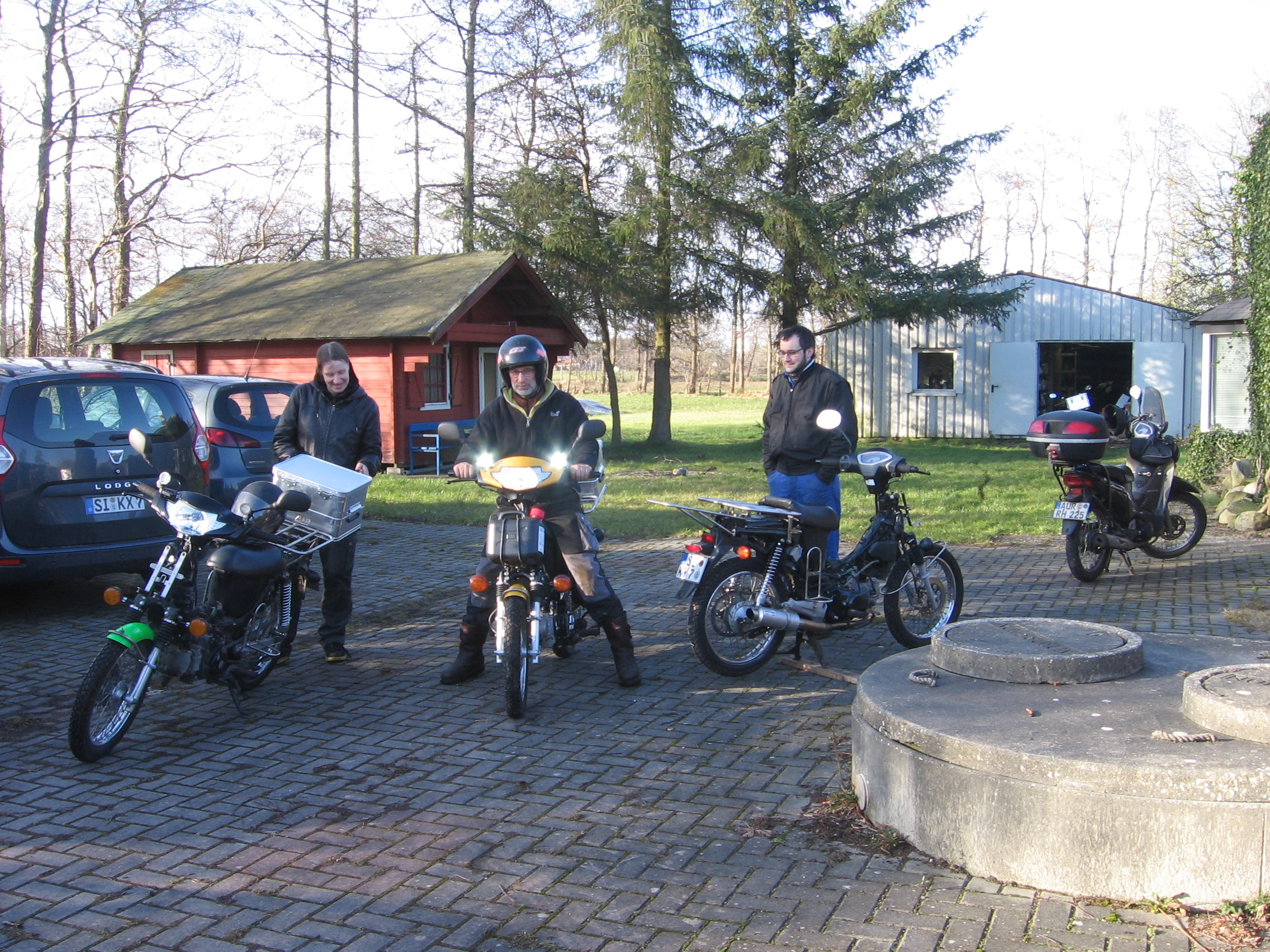 Jede(r) hatte noch Dinge auf dem Zettel. Janni: "erstmal alle Schrauben nachziehen, und nen Auspuff montieren"; Böcki: "hab gerade nen besseren Motor druntergebaut"; Reinhard: "willste ne Probefahrt machen"; Martin: "die Arrow-Auspuffanlage ist mir nun doch zu laut"
