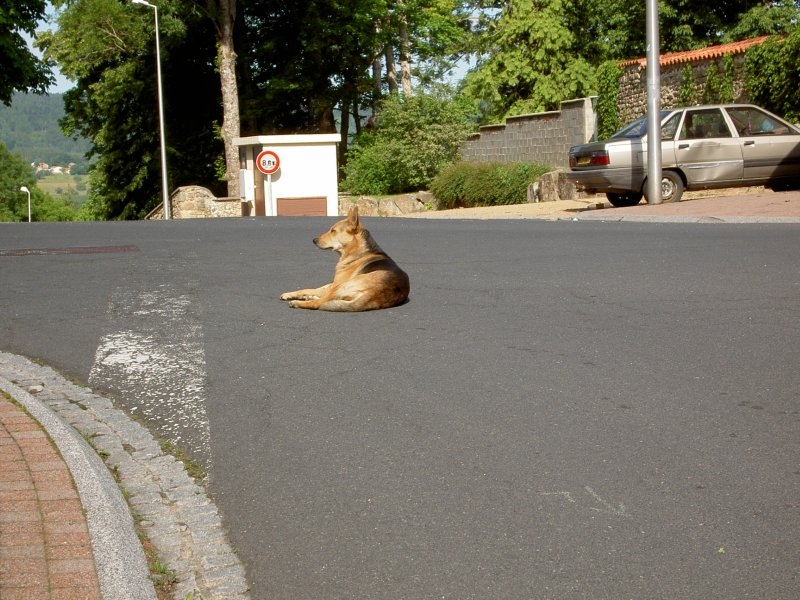 Weiter Richtung Colmar. Einer von hunderten Kreisverkehren. Baustelle, frisch asphaltiert.