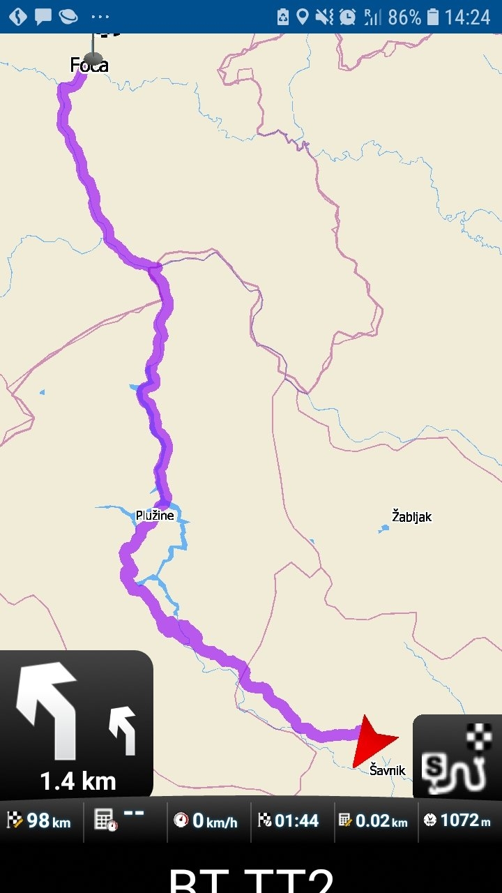 Ich hatte heute schöne Strassen, aber so 40 km waren allerletzte Kategorie. Nun, 3 km vor dem Ziel Plav fuhr ich hinter einem roten Traktor mit Heuwender mit 40 durch's Dorf.