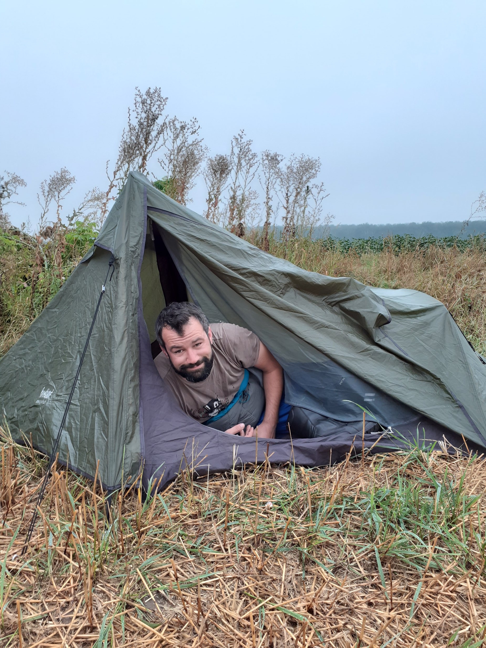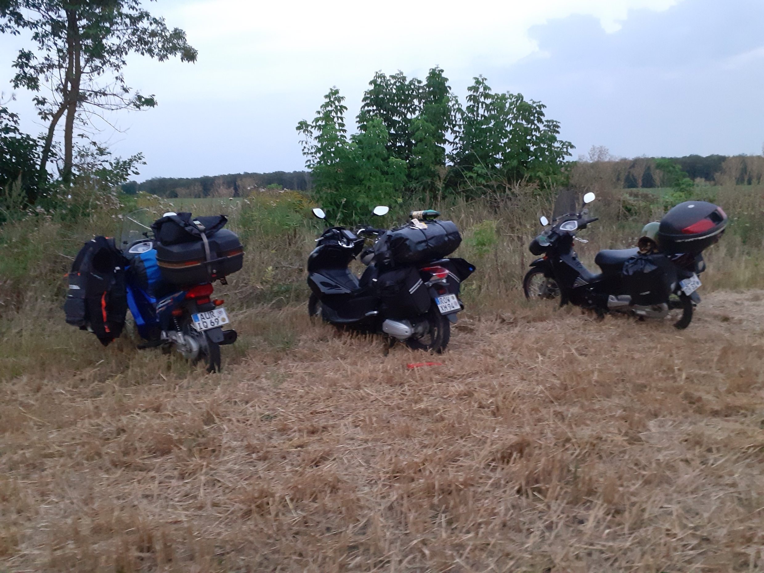 Danach noch ein paar hundert Kilometer abgespult und einen Zeltplatz auf einem Stoppelfeld gefunden. Abends blitzte und donnerte es in der Ferne gewaltig, und der Wind trieb das Unwetter auf uns zu. Es dauerte aber noch bis vier Uhr morgens, bevor der Regen uns für ein paar Stunden erreichte.
