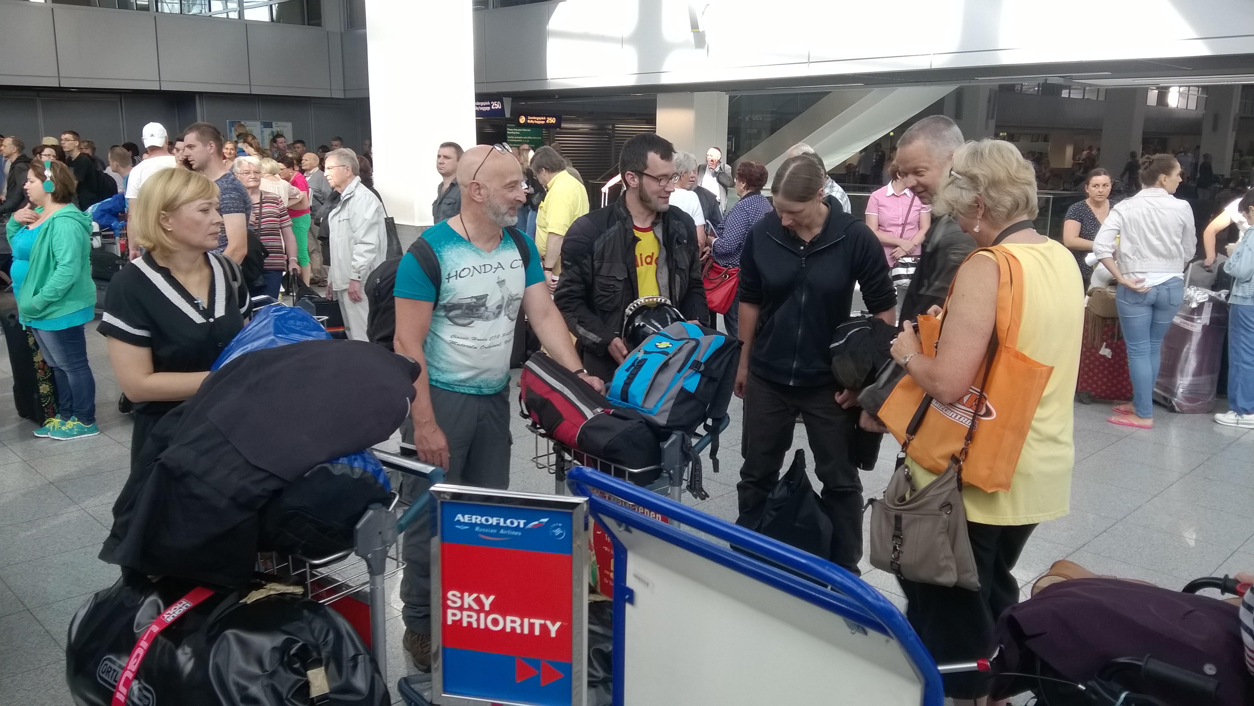 So, die Passagiere sollten aufgegeben sein und der Großteil des Gepäcks - leider ging auf dem innerdeutschen Flug ein Gepäckstück verloren und es muss nachgeliefert werden oder vor Ort muss sich die Dame der Reisegesellschaft komplett neu einkleiden und bestücken. Wollen wir mal hoffen, dass dies das letzte größere Problem der Reise bleibt.