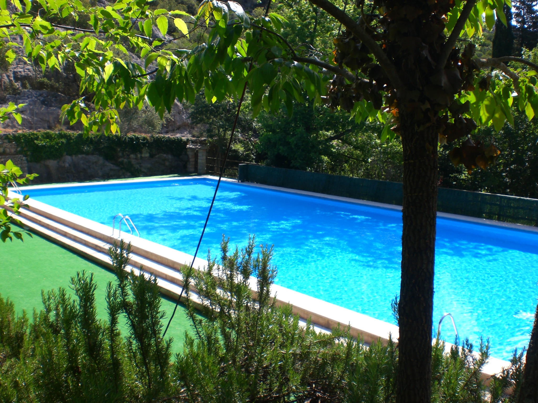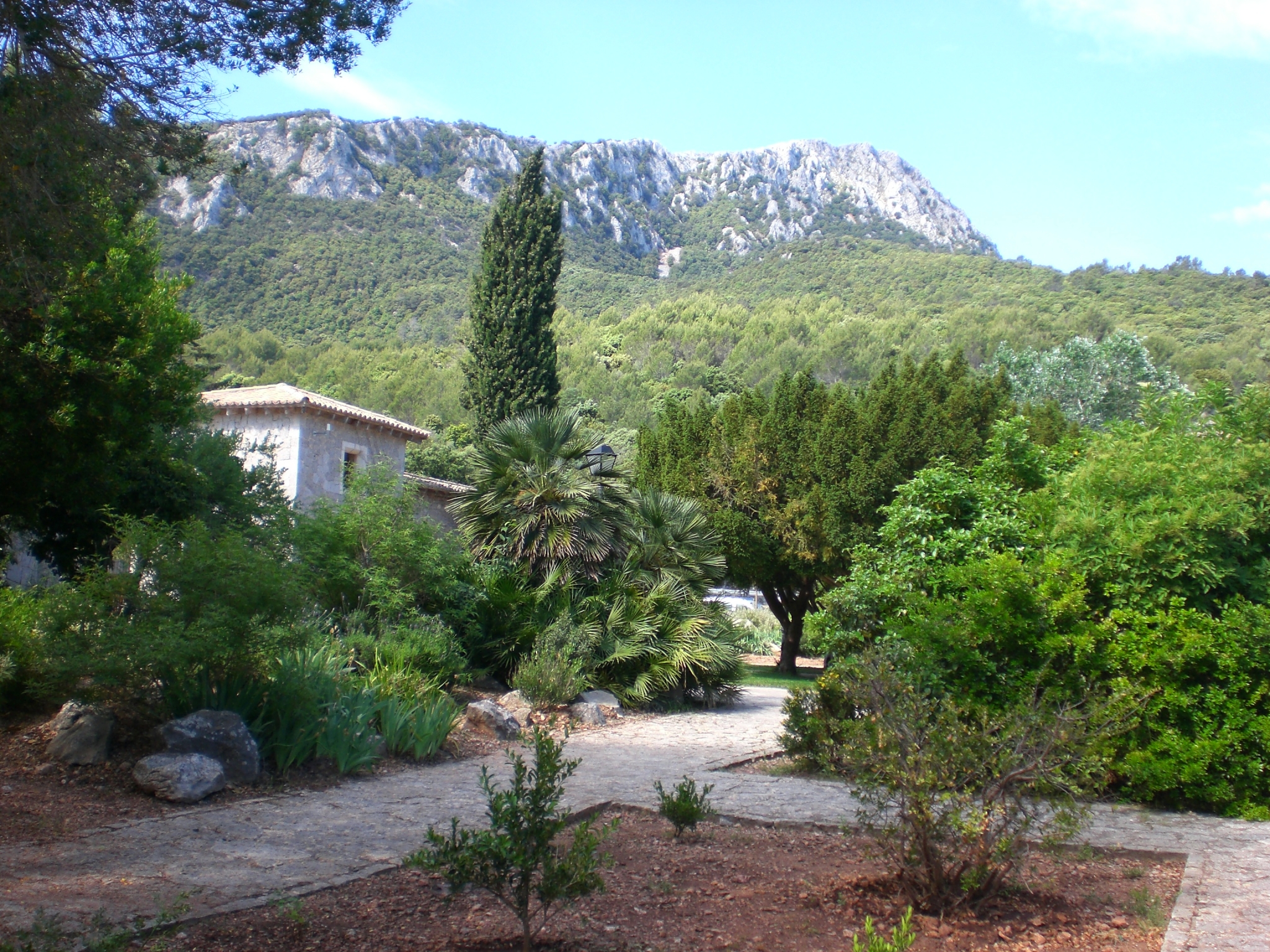 Sogar eine kleine Zeichnung eines meiner Lieblingsmaler -Miró haben sie. Sehr viele der ausgestellten Kunstgegenstände sind Spenden und Vermächtnisse von Bürgern. Weshalb und wofür auch immer. Klöster leben nun einmal vom Seelenfrieden. Bei den meisten meiner Klosterbesuche,- vor allem in Bayern- ist immer eine Brauerei oder und eine große Bewirtung angeschlossen. Die Struktur ist auch hier nicht anders und so kam mein Hintern in den Genuß einer klösterlich hergestellten Kräutersalbe und mein Magen zu einem mallorquinischen Leckerbissen. Weiß nicht mehr was es ist, nur daß es ausgezeichnet schmeckt. Durch die Außenanlagen mit Schwimmbad für die Internats-Chor-schüler zu den historischen Unterkünften der Pilger (oben schliefen die Pilger, unter fraßen die Maultiere) schlendere ich zu meinem Zeltplatz, nehme die Luma aus dem Zelt, lege sie unter den Schatten des Olivenbaum und mache das, was die Spanier außer dem Stierkampf noch erfunden haben: Siesta machen.