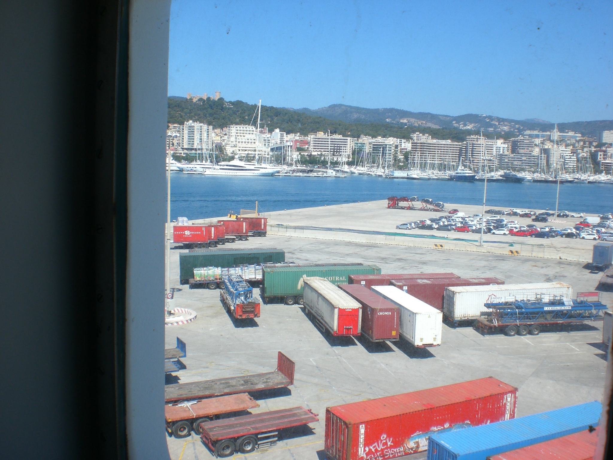 Nach den vielen kalten Duschen in Lluc auf dem zum Kasteien verurteilten Klostercamping eine heiße Dusche, sowie eine Wäsche der Klamotten mit schREI in der Tube. Weil ich Zeit habe und nicht tief schlafen will, ausgiebig Körperpflege betreiben. Ist notwendig! Die Haare des Kopfes haben sich in die Naseninnenwände verzogen und schauen sich ohne Schnitt die Gegend an. Dem kann abgeholfen werden. Nun die Ausgehuniform (wieder Jeans mit Poloshirt) angezogen und zum Lunch auf das Oberdeck. Die Lkwfahrer liegen auf den Bänken und dösen vor sich hin. Die Jungen sitzen in den “WiFi” Ecken und malträtierten die Handy´s. Nehme mein Zeug und begebe mich auf das Sonnendeck. Mallorca verschwindet langsam aus dem Sichtfeld, desto deutlicher erfolgt der Nachhhall in der Erinnerung. Was war Mallorca für mich? War ich überhaupt auf Mallorca?