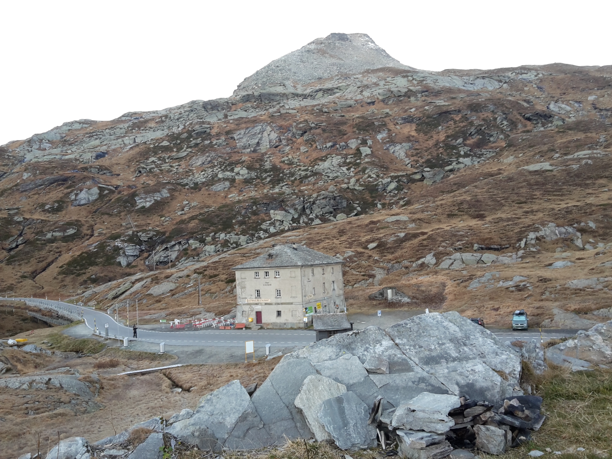 Die Anreise fand über die Schweiz und den San Bernadino Pass statt. Wir wollten sehen, ob der VW Bus auch hochgebirgstauglich ist. Bei manchen Kehren musste man schon ordentlich ausholen, aber rangieren musste ich nicht.
