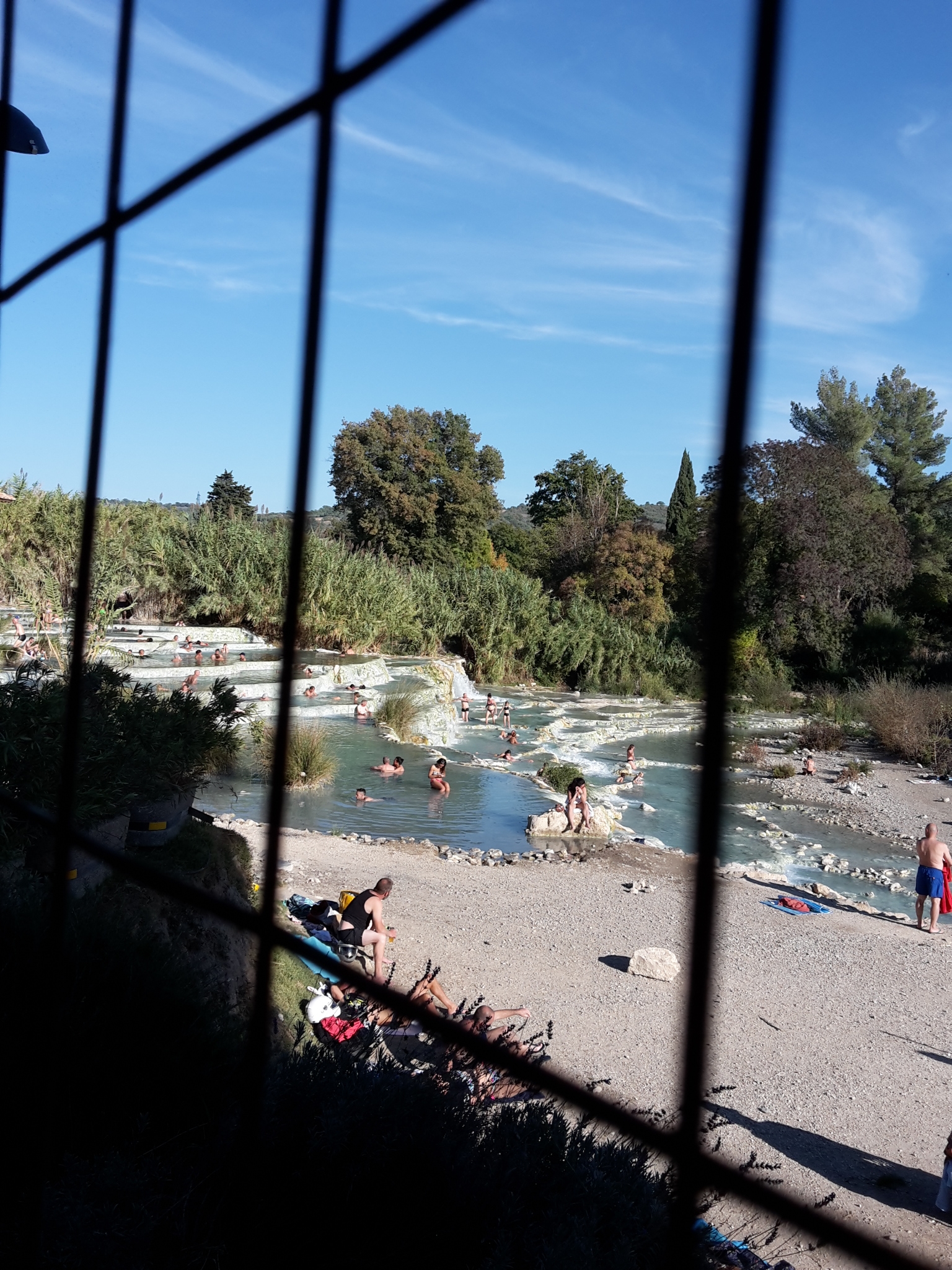 Am Flüsschen, das die Becken speist, kann man aber ohne Publikum wunderbar baden und es ist sogar wärmer, als die Becken. Allerdings sollte man schon früh unterwegs sein, weil sich sonst die Leute, Bader, sich ihre Plätze mit Picknickdecken, Tisch und Stühlen reservieren.