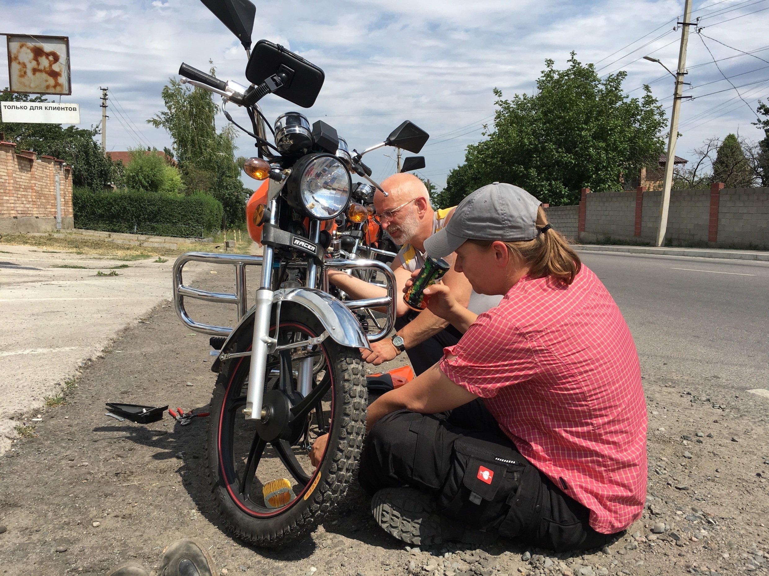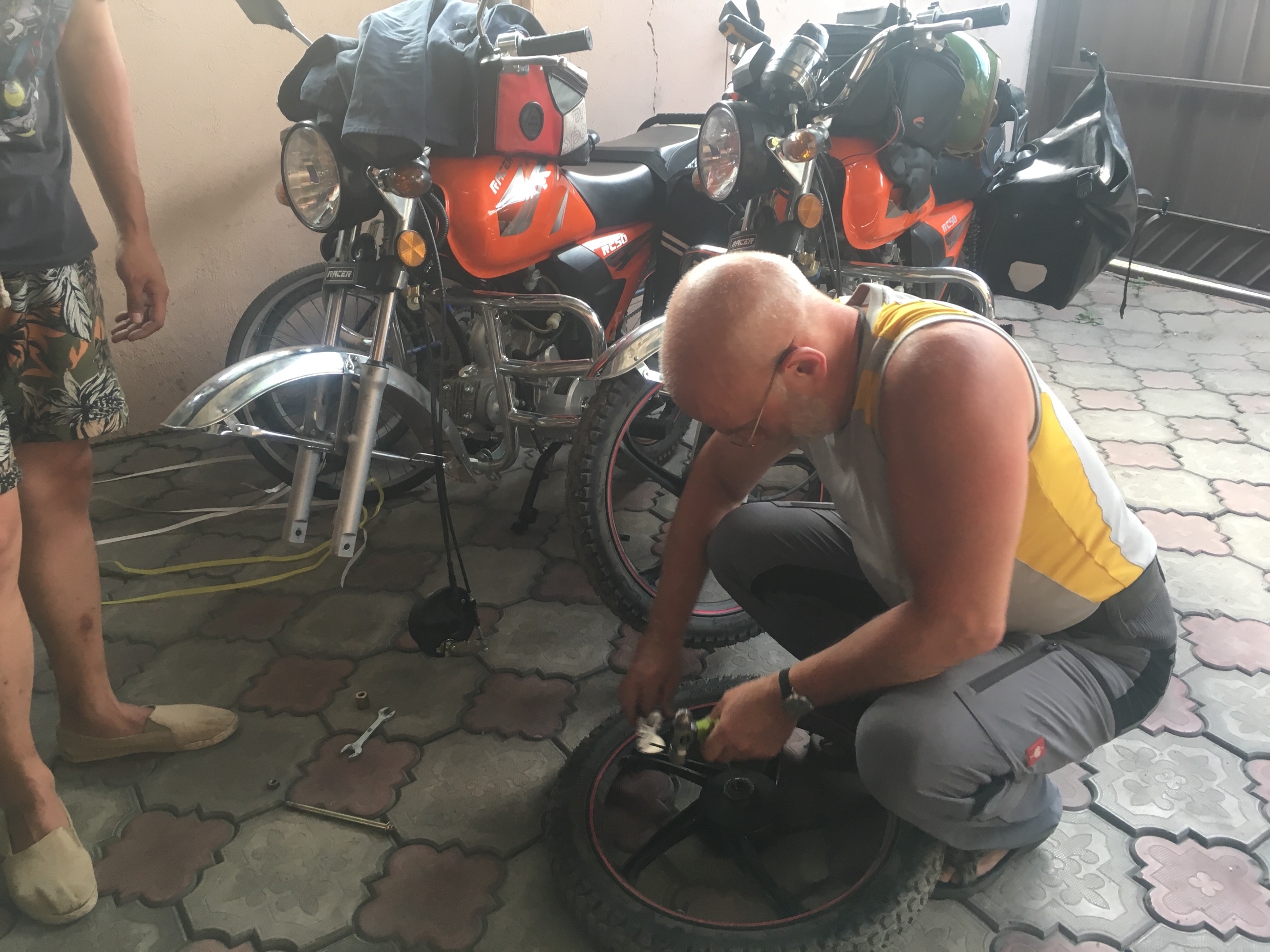 Zurück im Hotel diagnostizierten wir dann aber ein defektes Vorderradlager bei Martin.