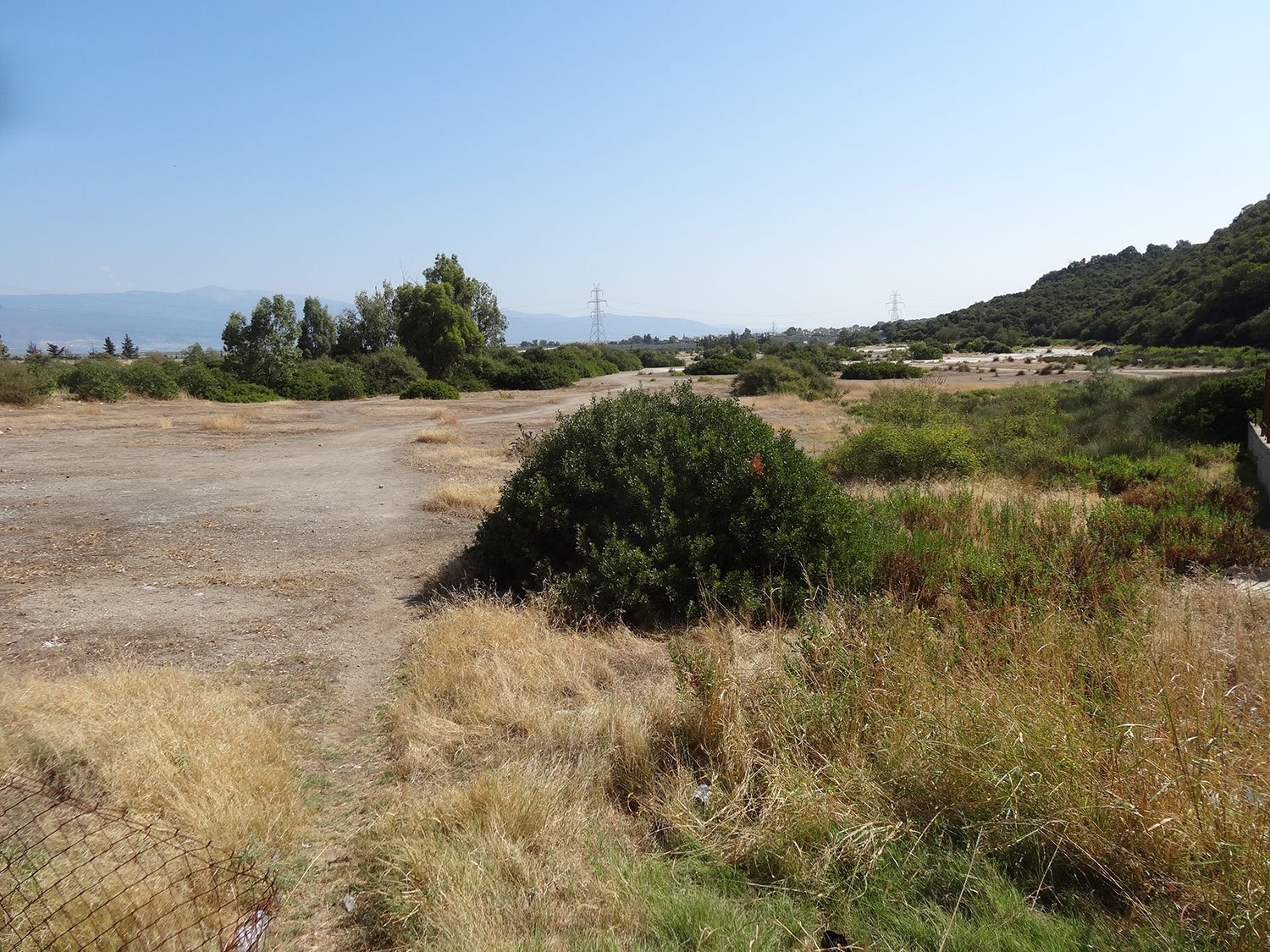 Rechts eine unwirtliche Brachfläche