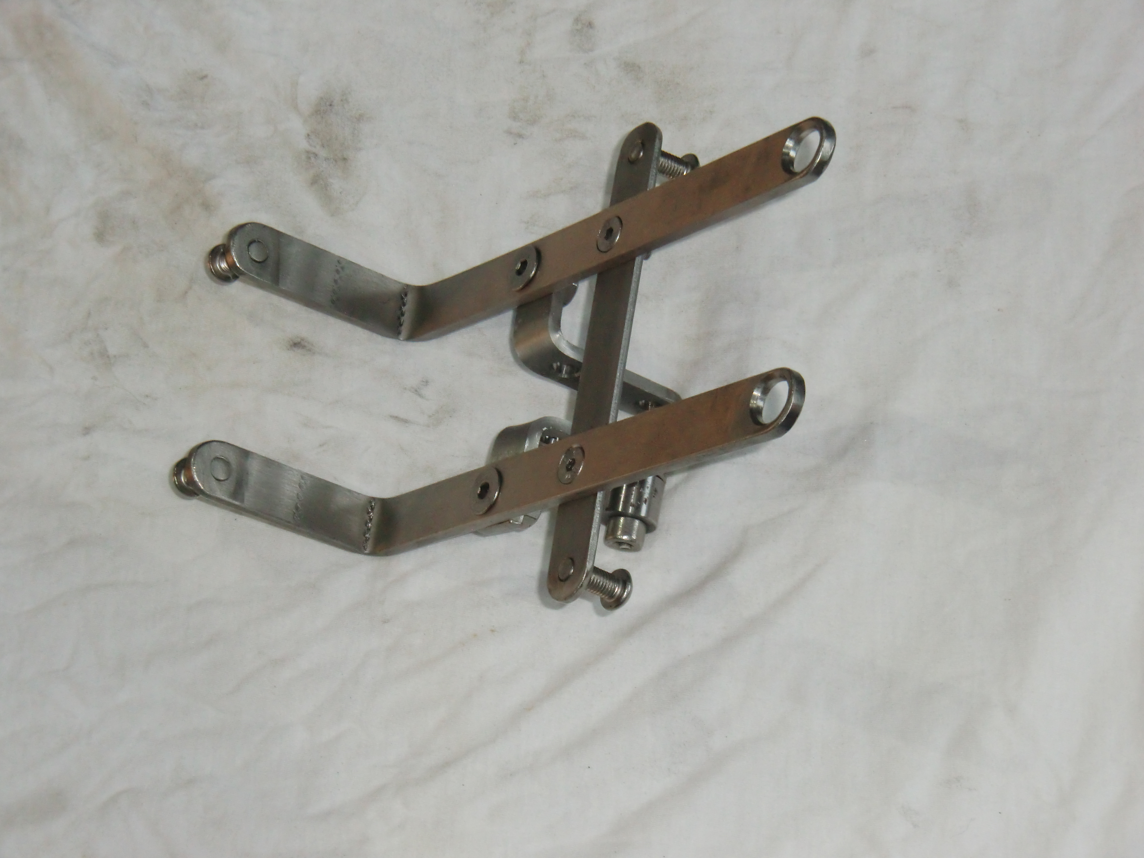 - 15mm längere Stoßdämpfer hinten, neu, 2fach verstellbar, lt. Reinhard hoffentlich passend für Fahrer + 30kg Gepäck, MZ 150ccm, weiter außen angeschraubt weil das Auge zu breit ist um in die original-Aussparung zu passen